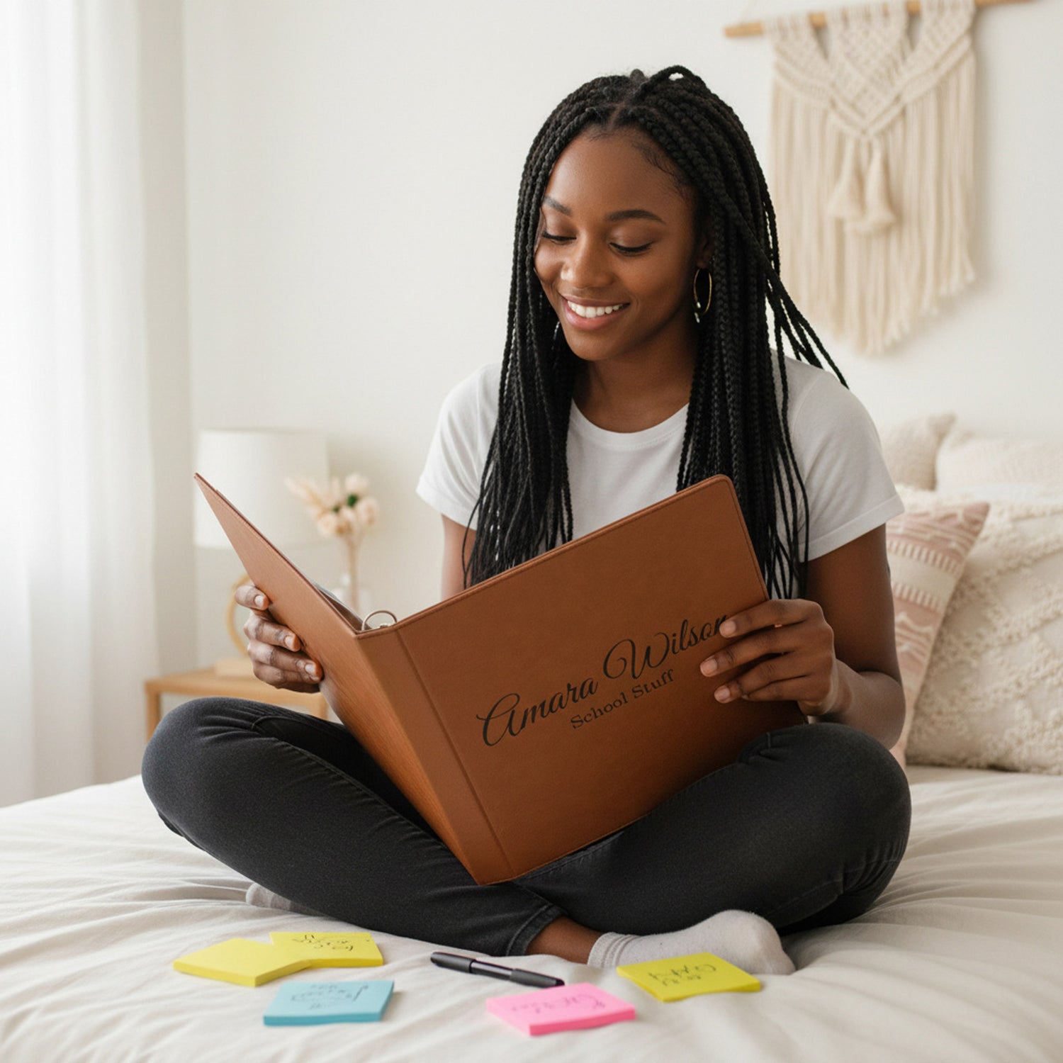 Personalized Binder w Name and Custom Text for Women and Teen Girls, Faux Leather