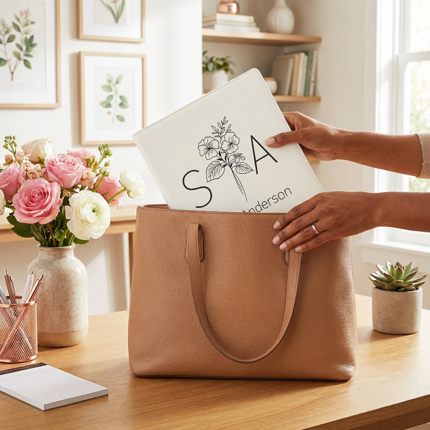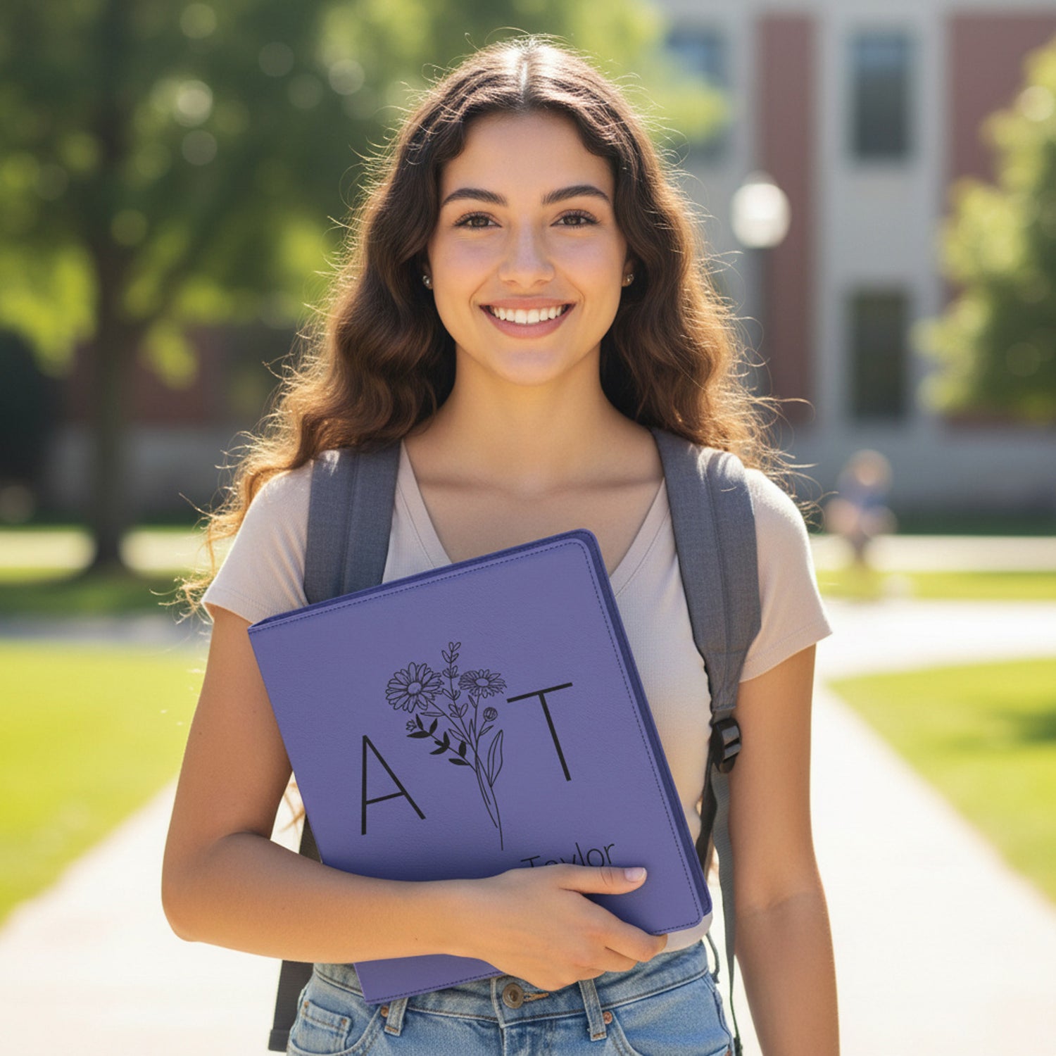 Keep your work, notes, and memories organized in style with this Personalized Birth Flower Binder, featuring an elegant split initial design with your name and birth month flower. Made from premium faux leather, this durable yet sophisticated binder adds a personalized touch to any desk or workspace — perfect for women, teachers, students, or professionals.