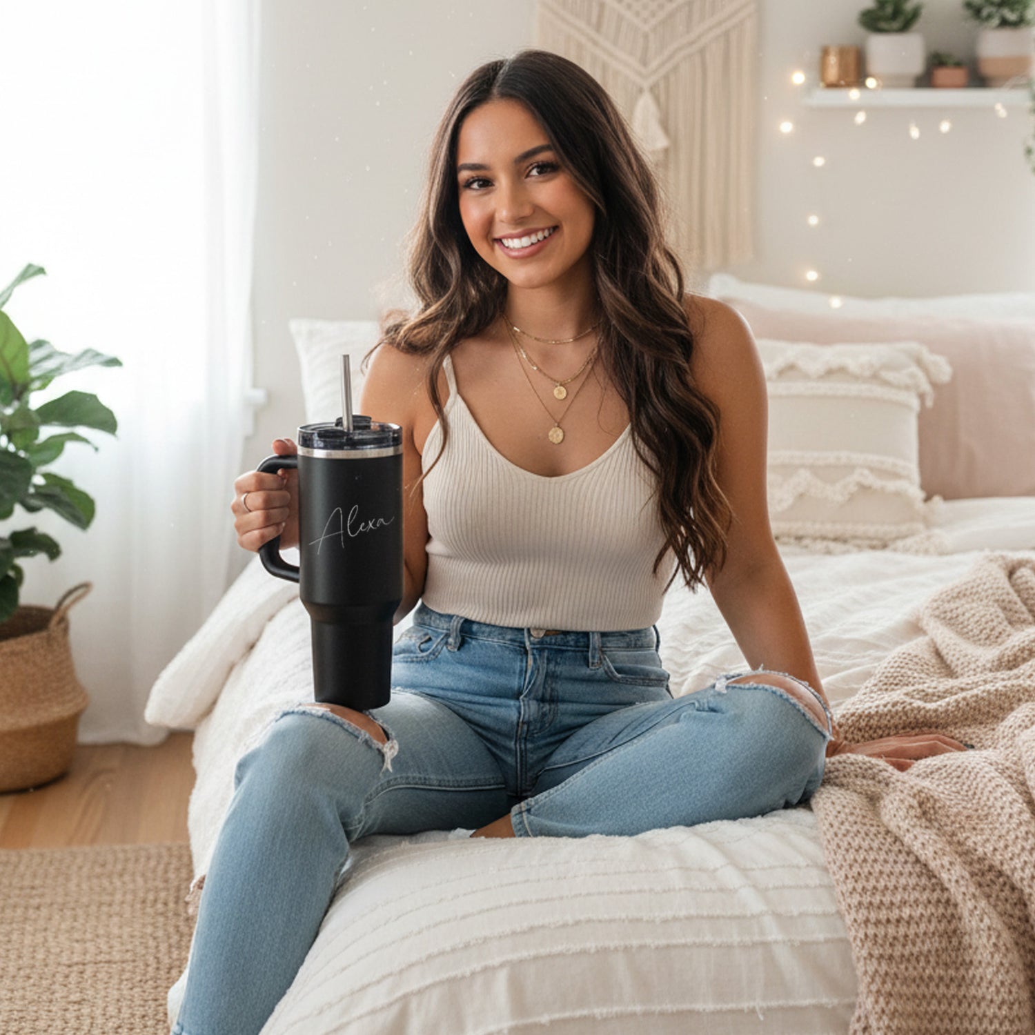 Women and Girls Engraved Personalized 40oz Tumbler with Handle, Custom Gifts for Her
