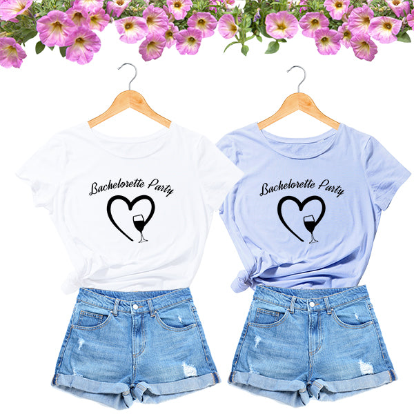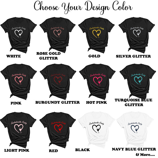Custom Personalized Bachelorette Party T-Shirts for bride and bridesmaids. Available in all colors and styles, perfect for bachelorette parties, bridal showers, and wedding celebrations. Soft, comfortable, and made to order for a perfect fit. Ideal gift for the bride, bridesmaid gifts, and party matching shirts. Order your custom bachelorette tees today!