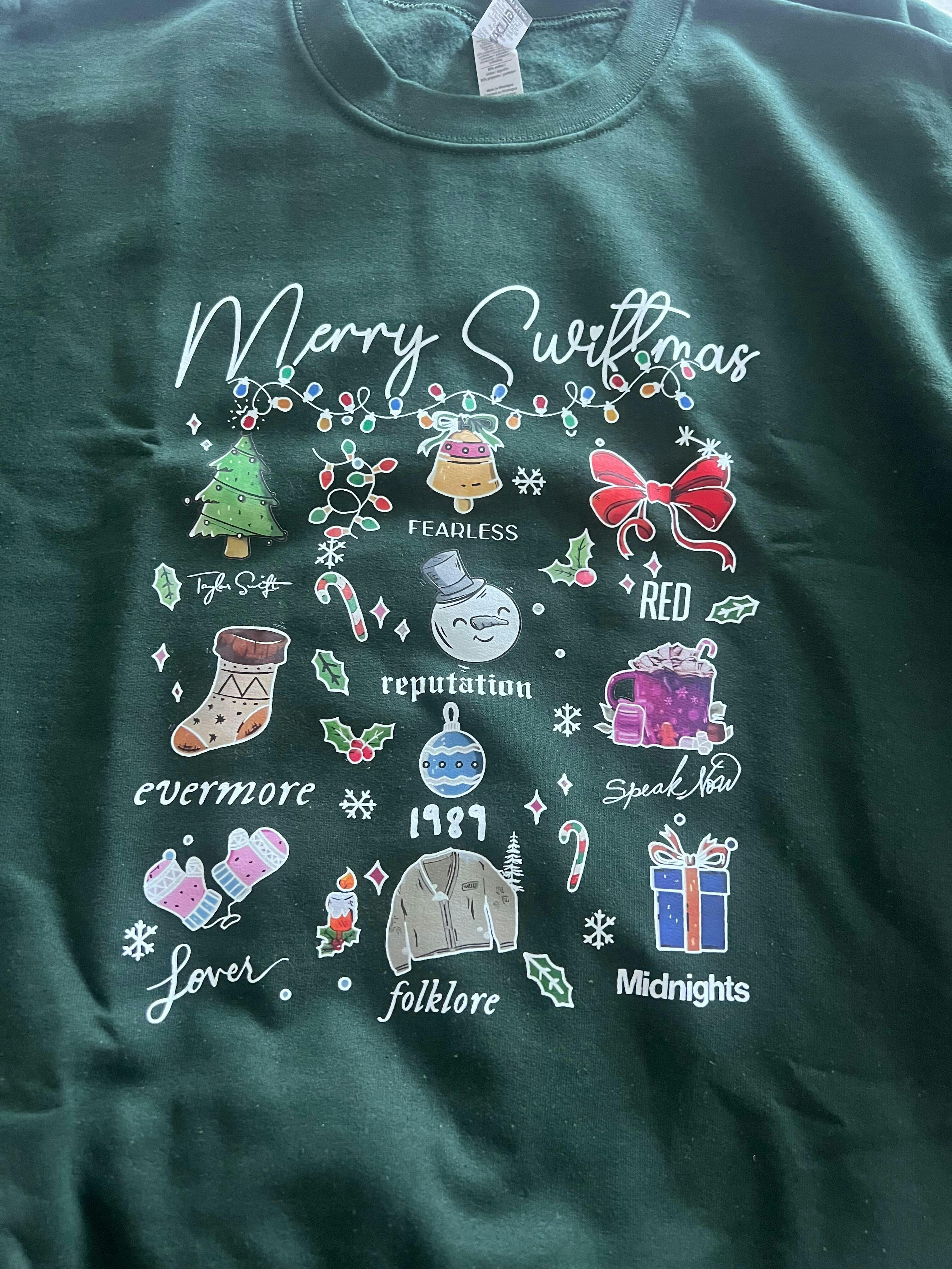 Cute Merry Swiftmas sweatshirt for Christmas. Great for Swifties. Features all 10 Taylor Swift albums. This sweatshirt is very soft and comfy for the winter season.