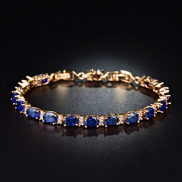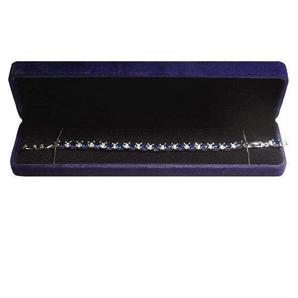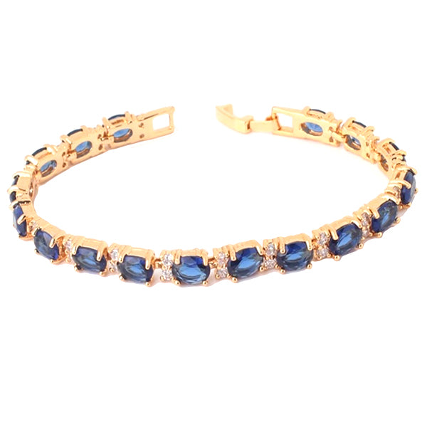 - Intricately designed womens bracelet in gold or silver with created blue sapphire stones that offers a sophisticated look