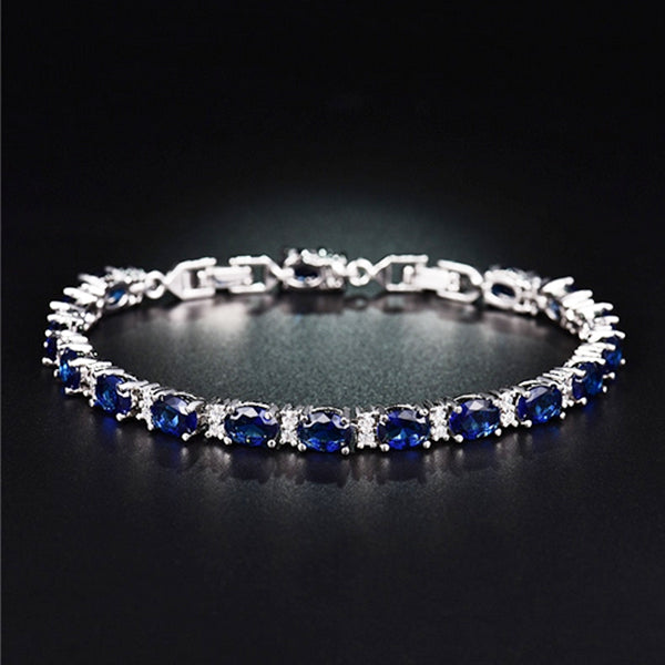 Womens Elegant Bracelet with Created Blue Oval Stones