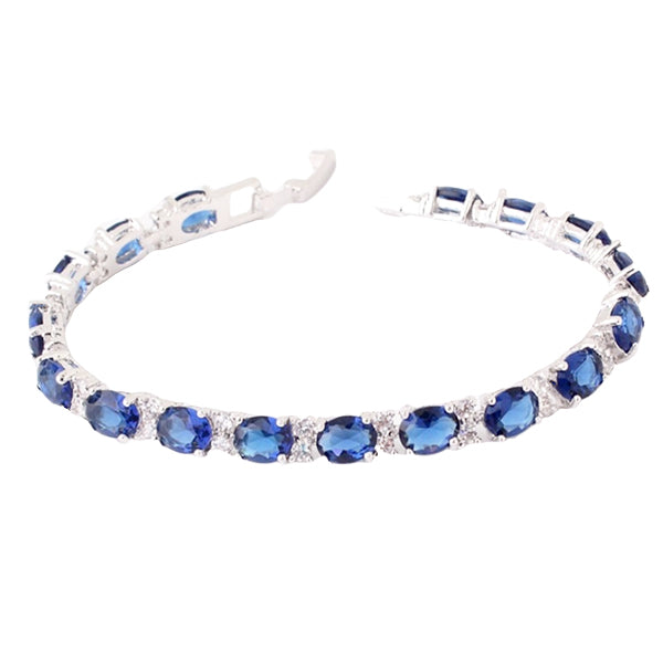 Womens Elegant Bracelet with Created Blue Oval Stones - Silver is backordered and will ship as soon as it is back in stock.