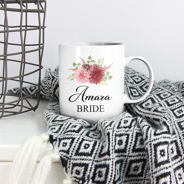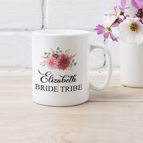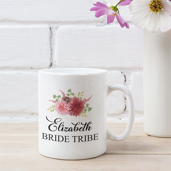 Bride Tribe and Bride Personalized Mugs for Bridal Party Featuring Floral Design | Bridesmaid Gifts, Proposal Gifts, Maid of Honor Mugs