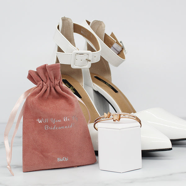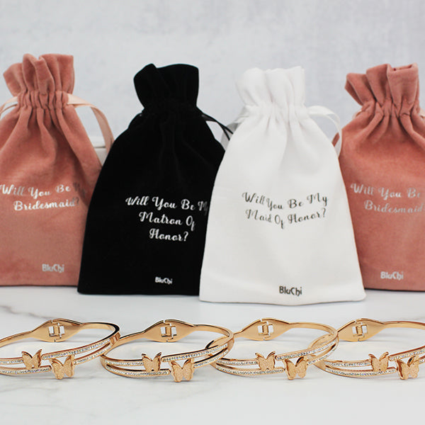 - Our Rose Gold Butterfly Bracelet with Proposal Pouch Sets is the perfect gift to propose to your Bridesmaid, Maid of Honor and Matron of Honor. Choose from Black, White or Rose Gold proposal jewelry pouches