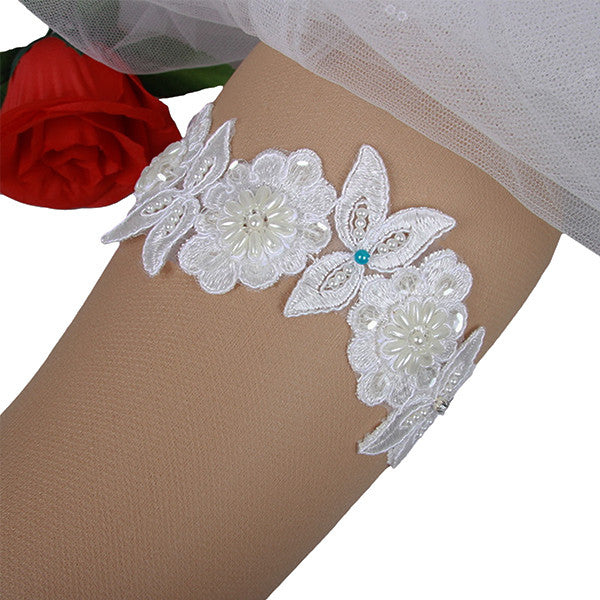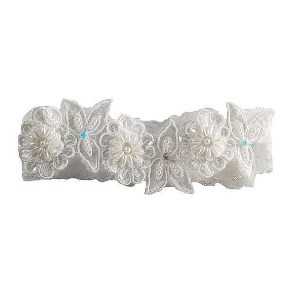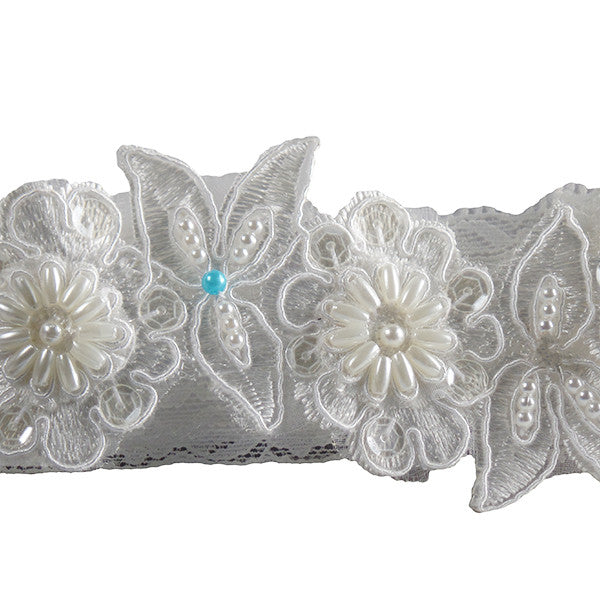 Hand Beaded Ivory and Blue Lace Garter - Ivory / L is backordered and will ship as soon as it is back in stock.