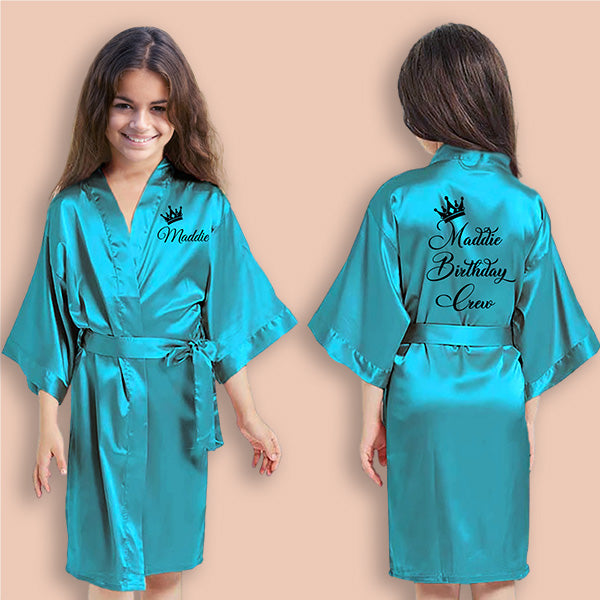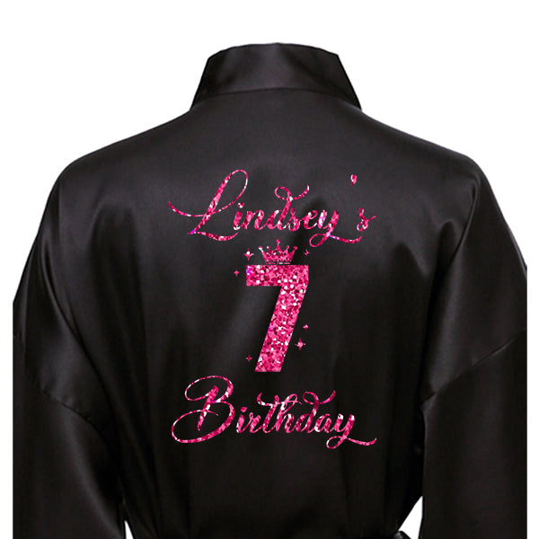Pretty Girl Robes w Birthday Number for Birthday Girl & Birthday Squad, Personalized Girls Bathrobes with Name, Spa Birthday Party Robes