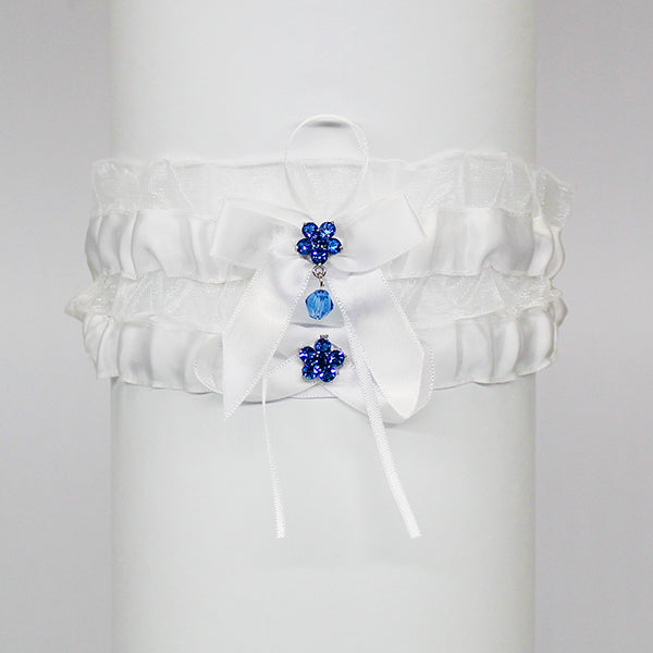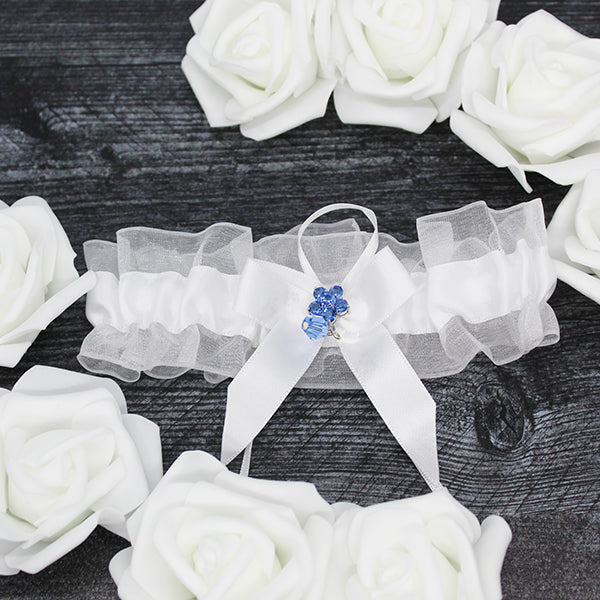 - Our white wedding garter with a something blue flower charm is a beautiful, simple, and fashionable garter perfect for any bride