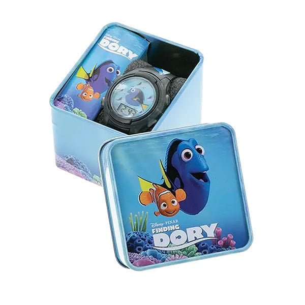 Disney Finding Dory LCD Watch in Colorful Gift Case, Black/Blue, Silicone Band, Round Face, Ages 3-6
