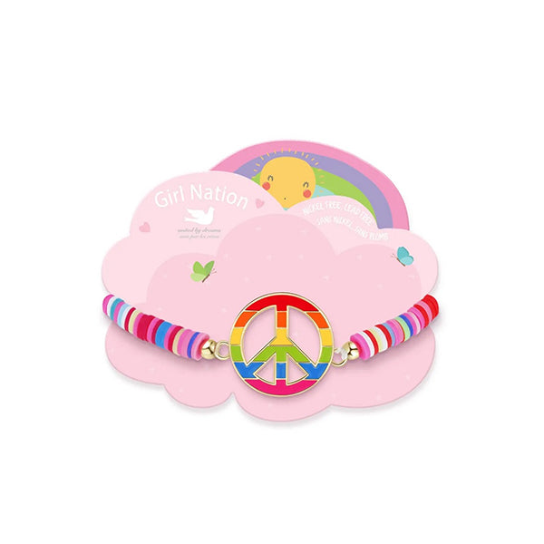Girls Bracelet by Girl Nation, Peace, Love & Happiness Collection - Multicolor / Rainbow Peace is backordered and will ship as soon as it is back in stock.