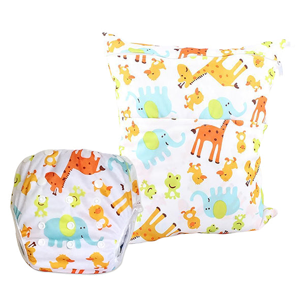 Reusable Swim Diapers and Wet Dry Diaper Bag 2 Pc Set - One Size / White Animals is backordered and will ship as soon as it is back in stock.