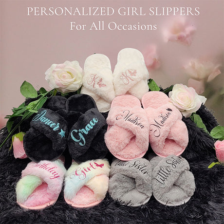In stock$ 16.05$ 29.99Unit price /XCute and Fluffy Girls Personalized Slippers for Birthday Gifts and Dance Recitals