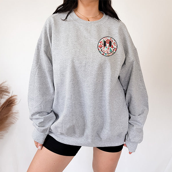 Cute, minimalist Christmas sweatshirt featuring a festive smiley face design. Perfect holiday gift for yourself or a loved one. Stay warm and stylish for the holiday season!