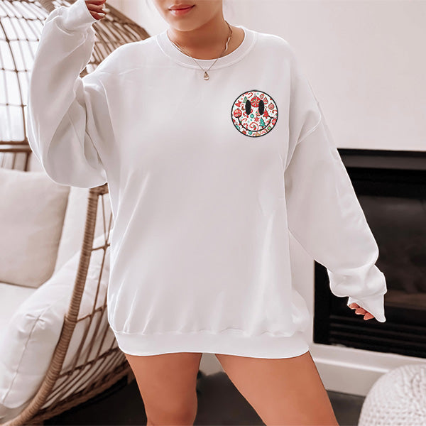 Cute Christmas Smiley Face Sweatshirt for Women - White / S is backordered and will ship as soon as it is back in stock.