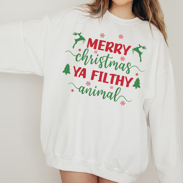 Funny Merry Christmas Ya Filthy Animal Sweatshirt for the Holidays - White / S is backordered and will ship as soon as it is back in stock.