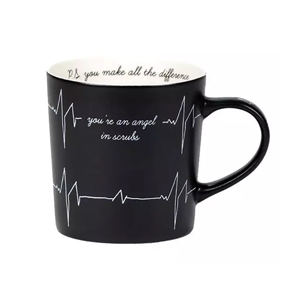 The outside of the mug reads: You Are An Angel In Scrubs and the inside reads: P.S. You make All The Difference