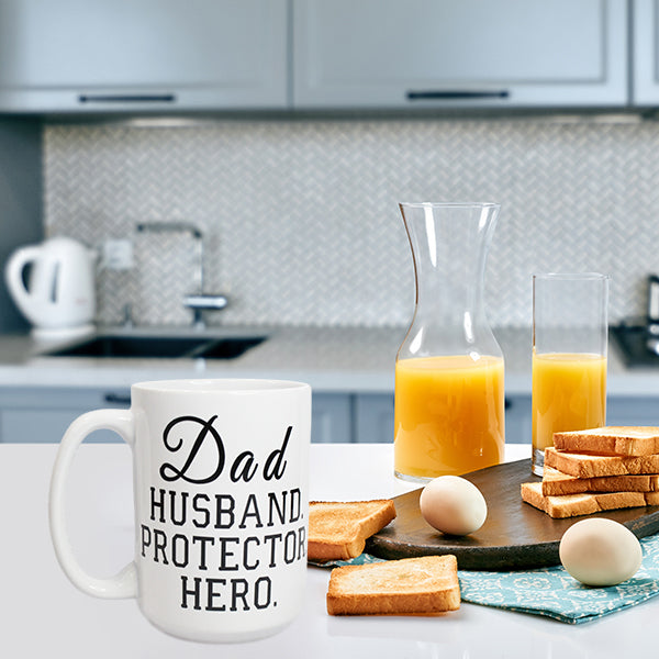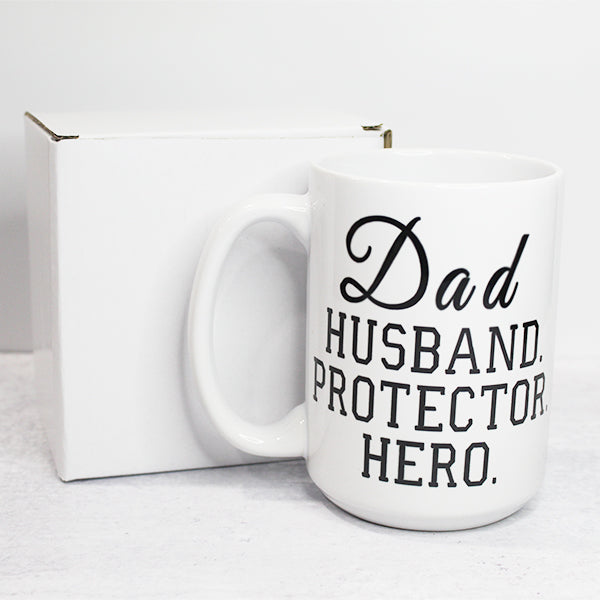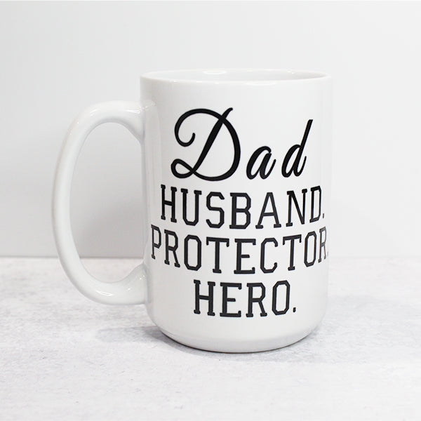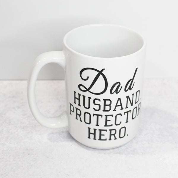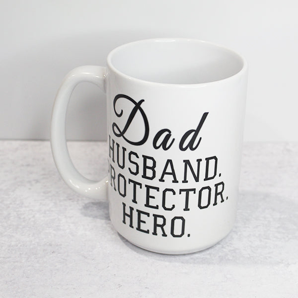 Our Dad, Husband, Protector, Hero mug makes a statement to the most important man in your life. It not only represents who they are, but what they mean to you