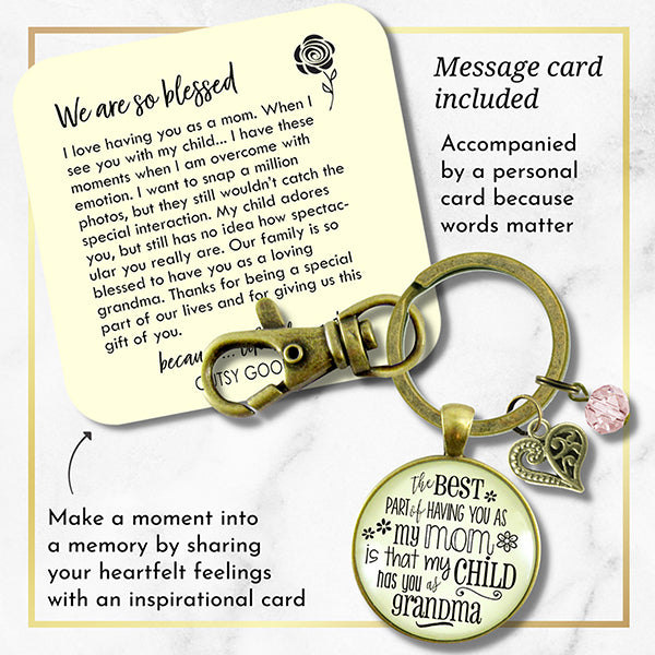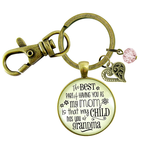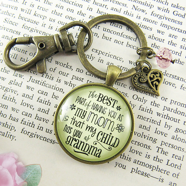 - The keychain reads: The Best Part Of Having You As My Mom Is That My Child Has You As A Grandma