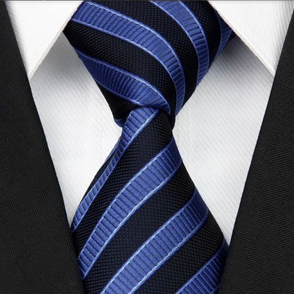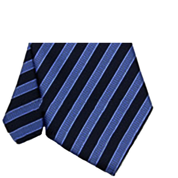 Mens Dark Blue with Light Blue Striped Necktie, Wide Width