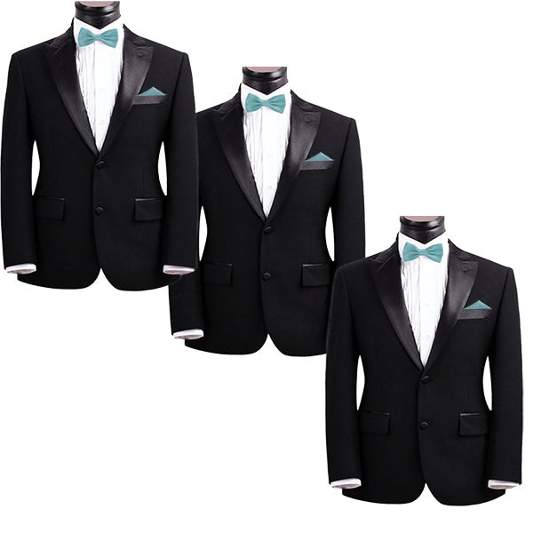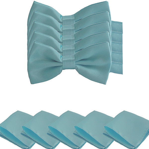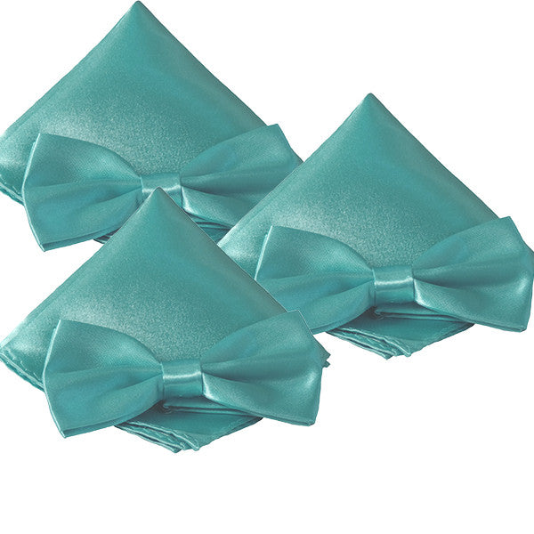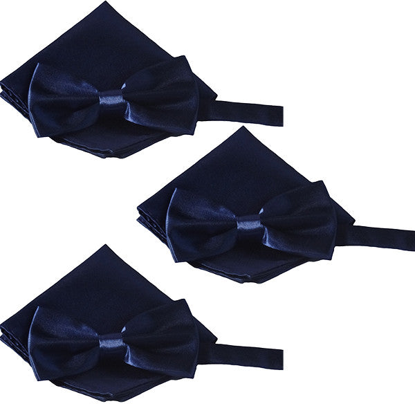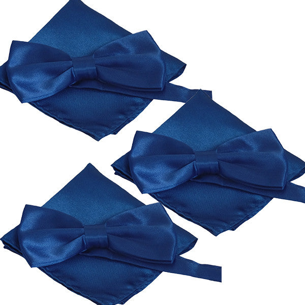 - Smooth textured bow tie and pocket square sets for weddings and other special events