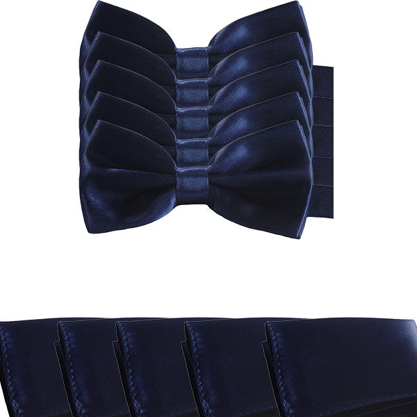 Mens Smooth Satin Feel Formal Pre-Tied Bow Tie and Pocket Square Sets