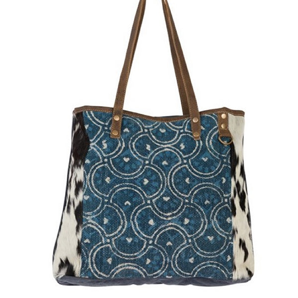 - The beautiful blue rug fabric and canvas is only out done by hairon leather on the sides of bag and premium quality genuine leather that accents the bag