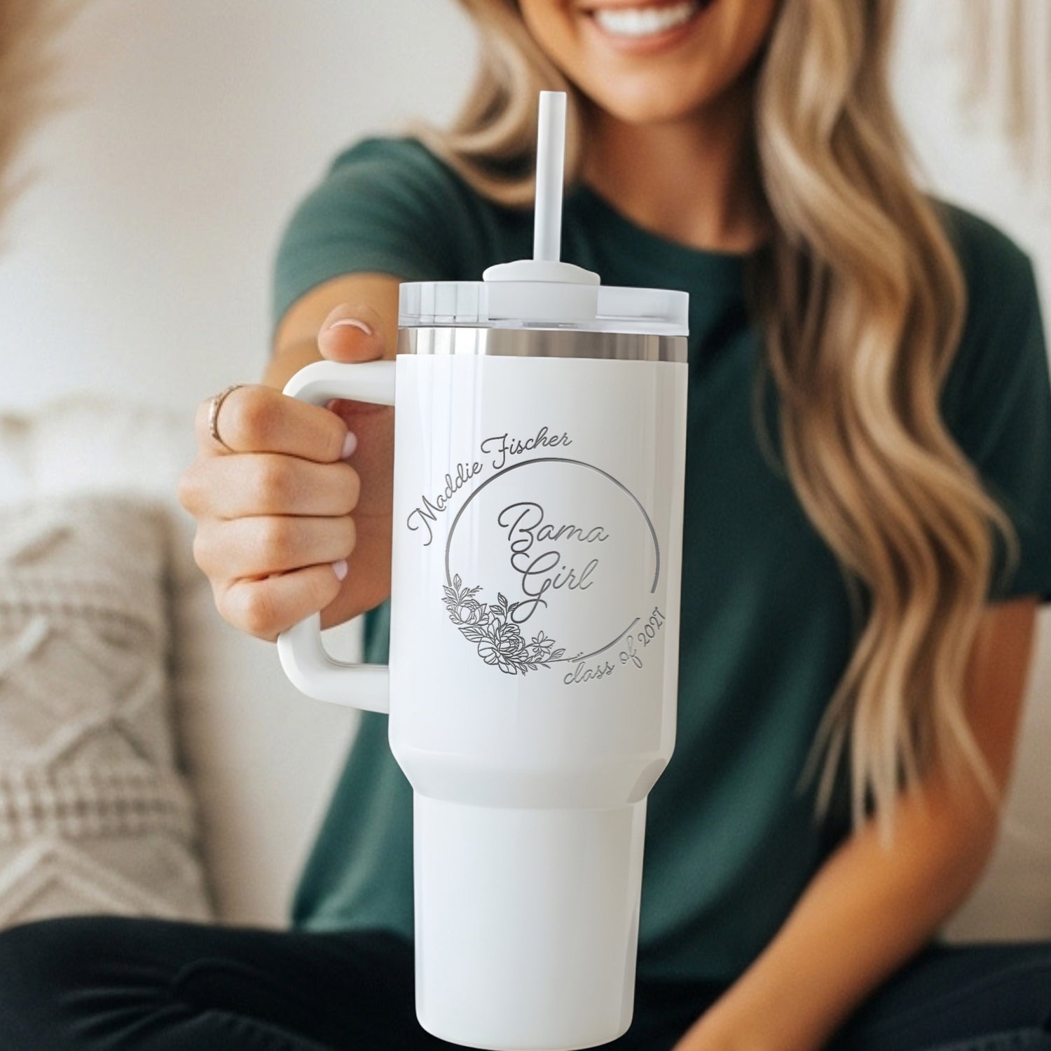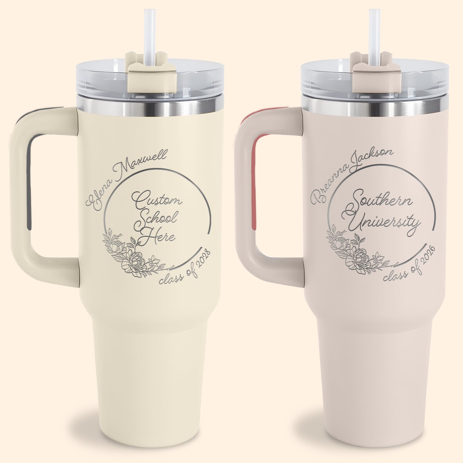 Floral Circle 40oz Custom College Tumbler, Personalized Gifts for College Girls