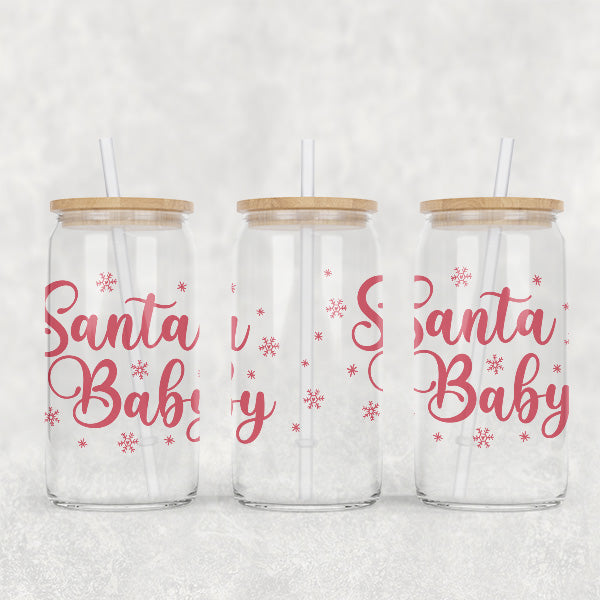 Santa Baby Clear Iced Coffee Glass Christmas Tumbler with Straw and Lid