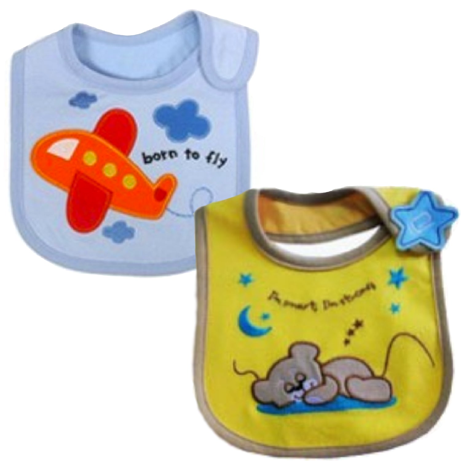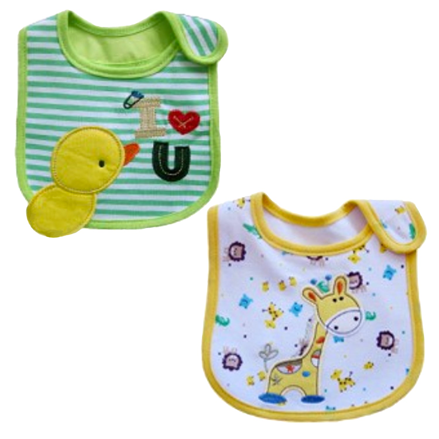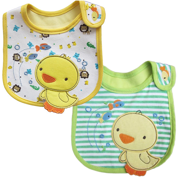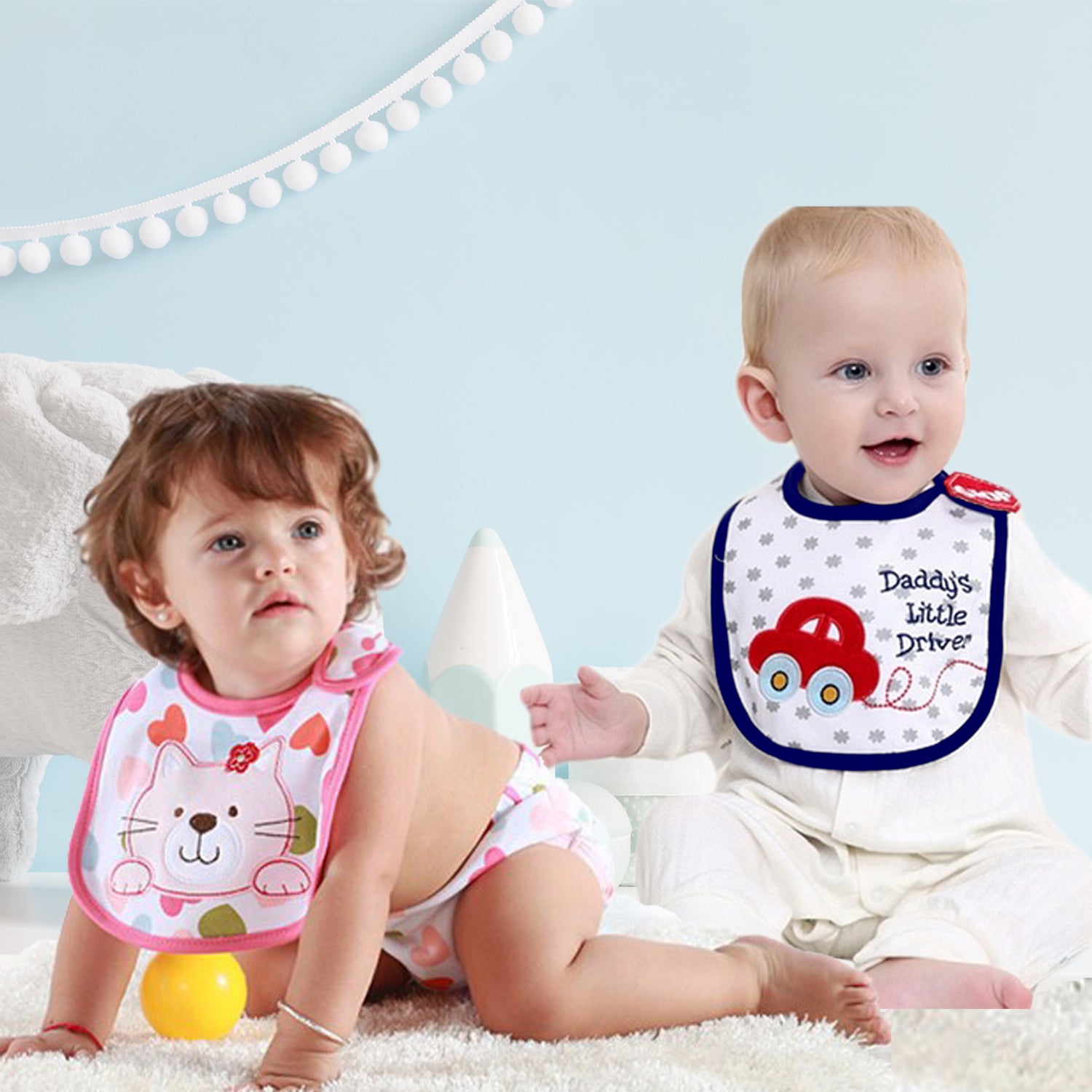 2 Pack of Baby Waterproof Cotton Bibs with Embroidered Designs