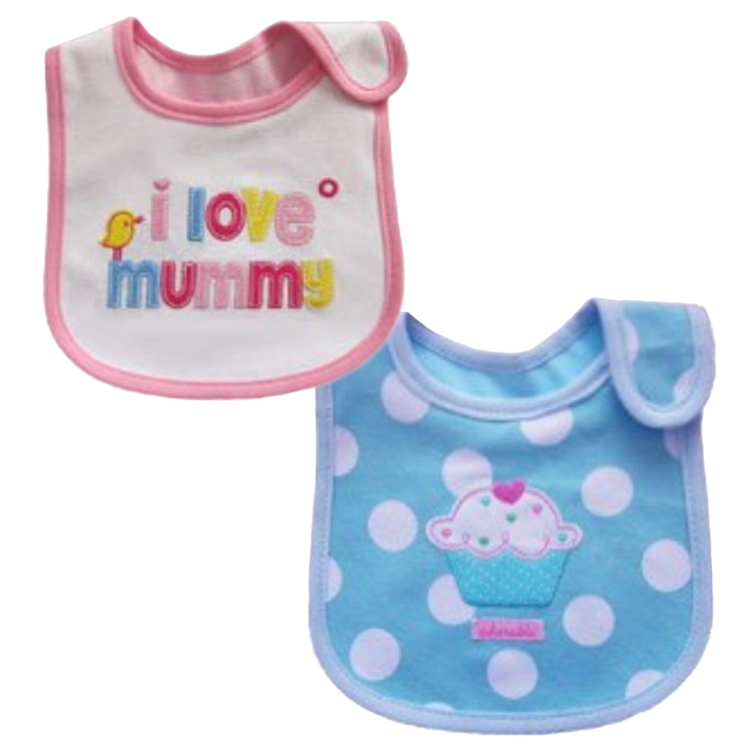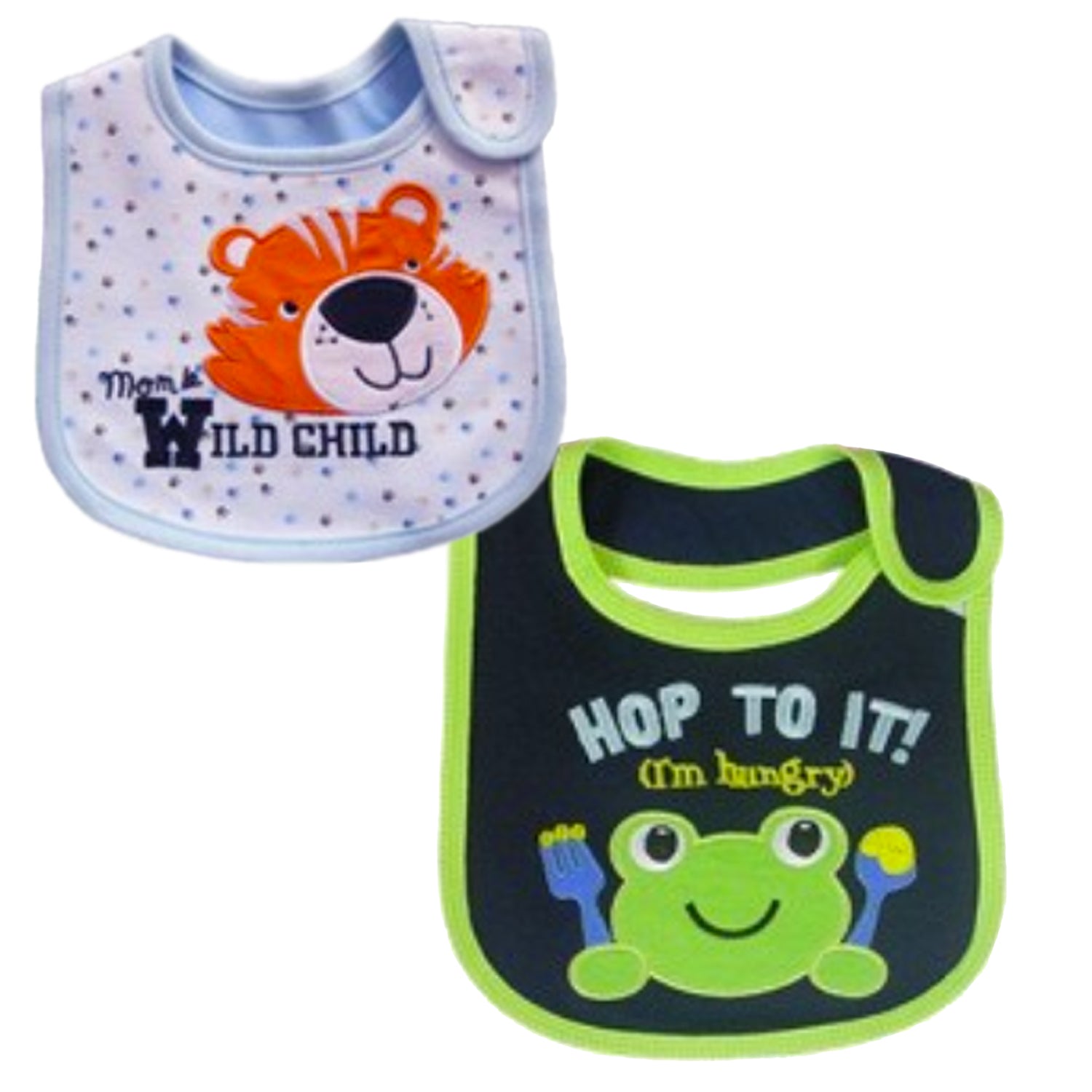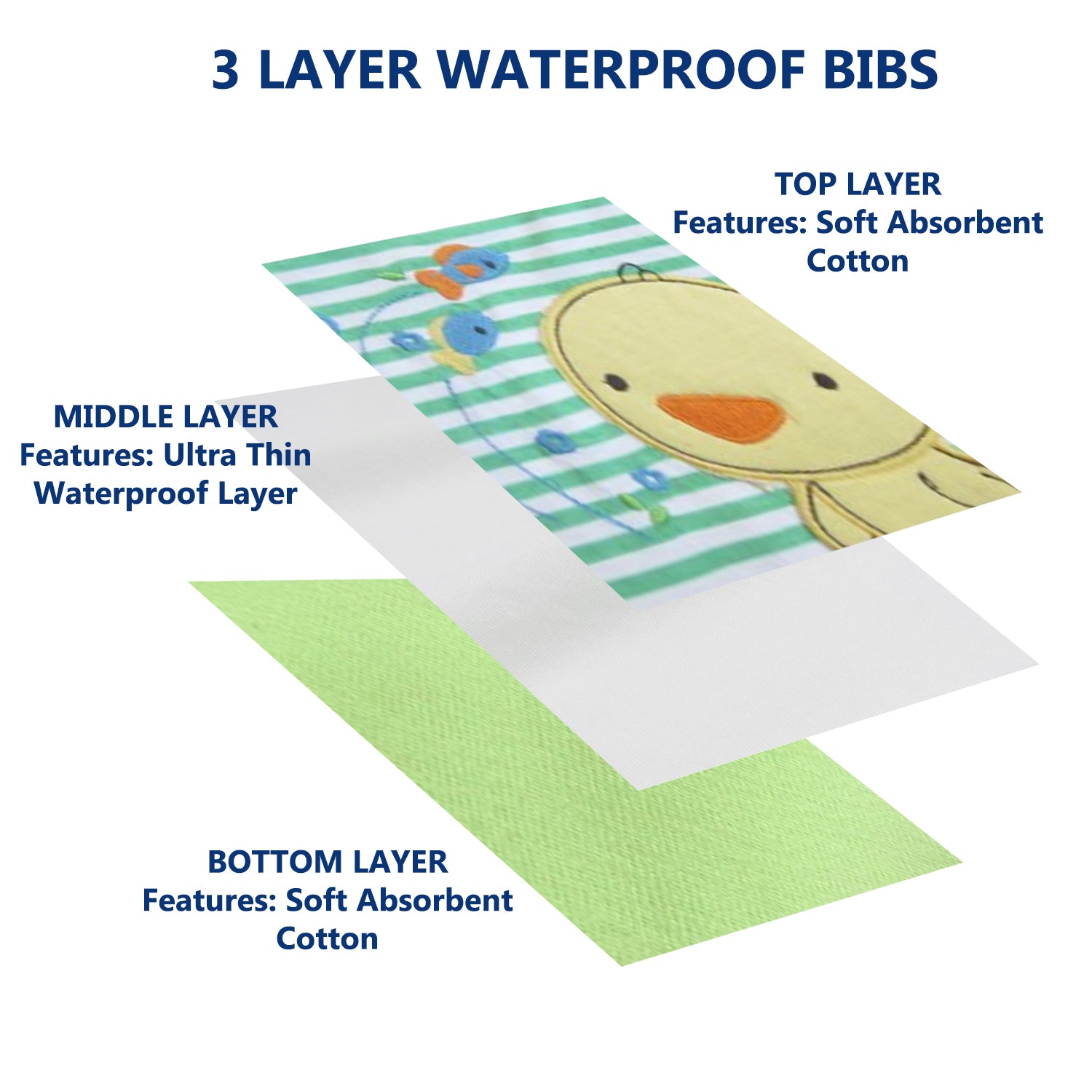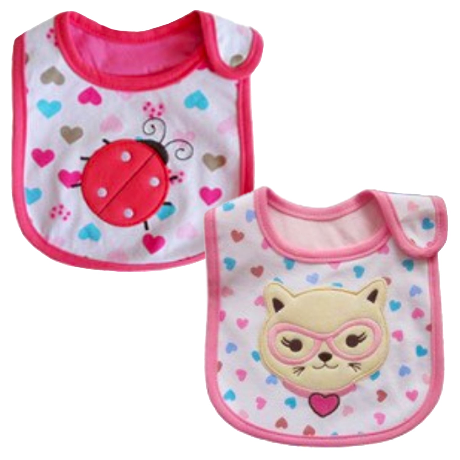 2 Pack of Baby Waterproof Cotton Bibs with Embroidered Designs