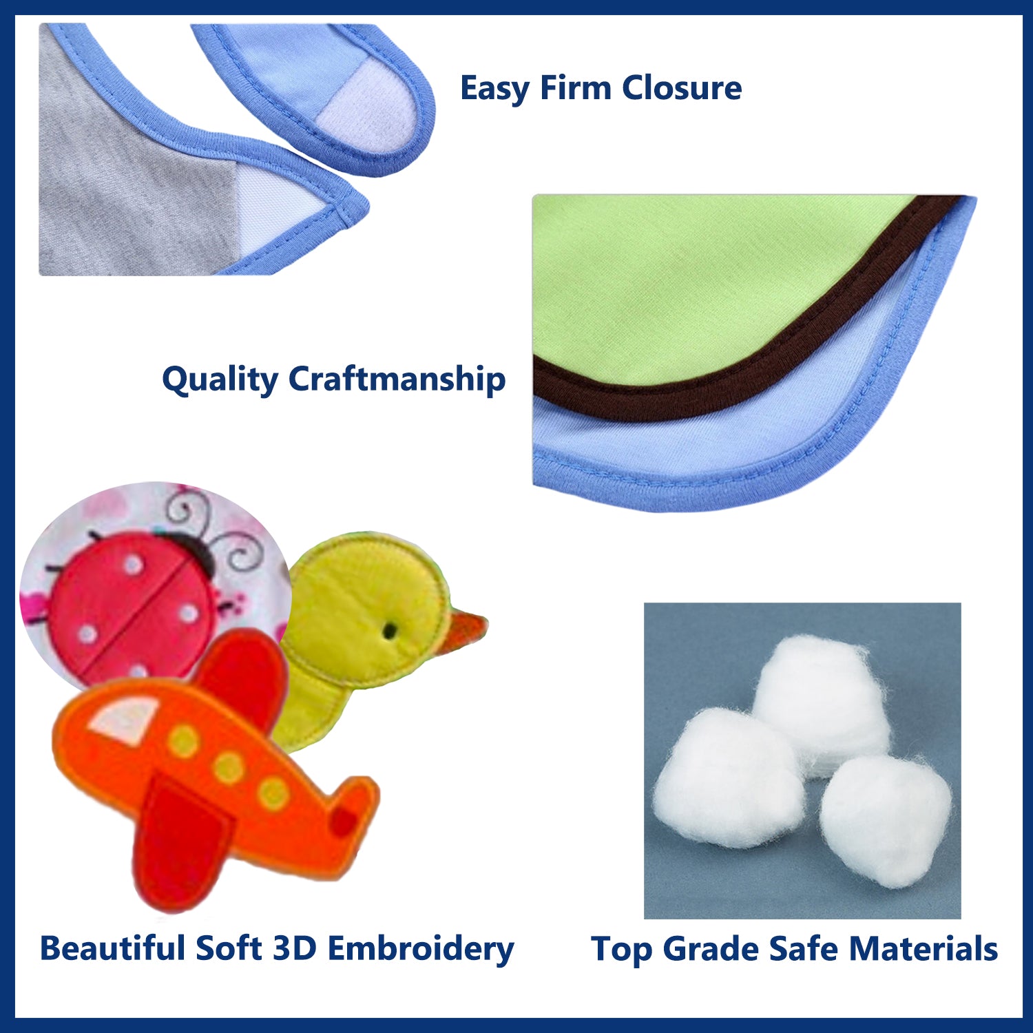 - Bibs are made with 95% cotton, so is quite soft and not harmful in anyway to baby's skin