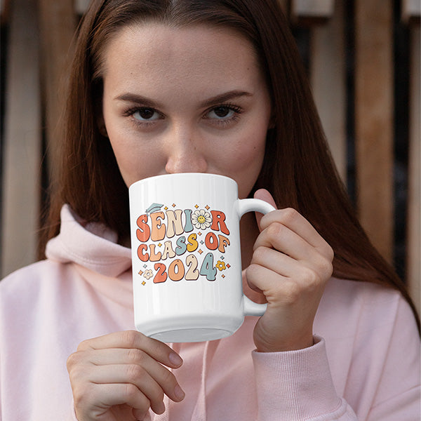 Cute Retro Senior Class of 2024 Graduation Coffee Mug for Her - 11oz is backordered and will ship as soon as it is back in stock.