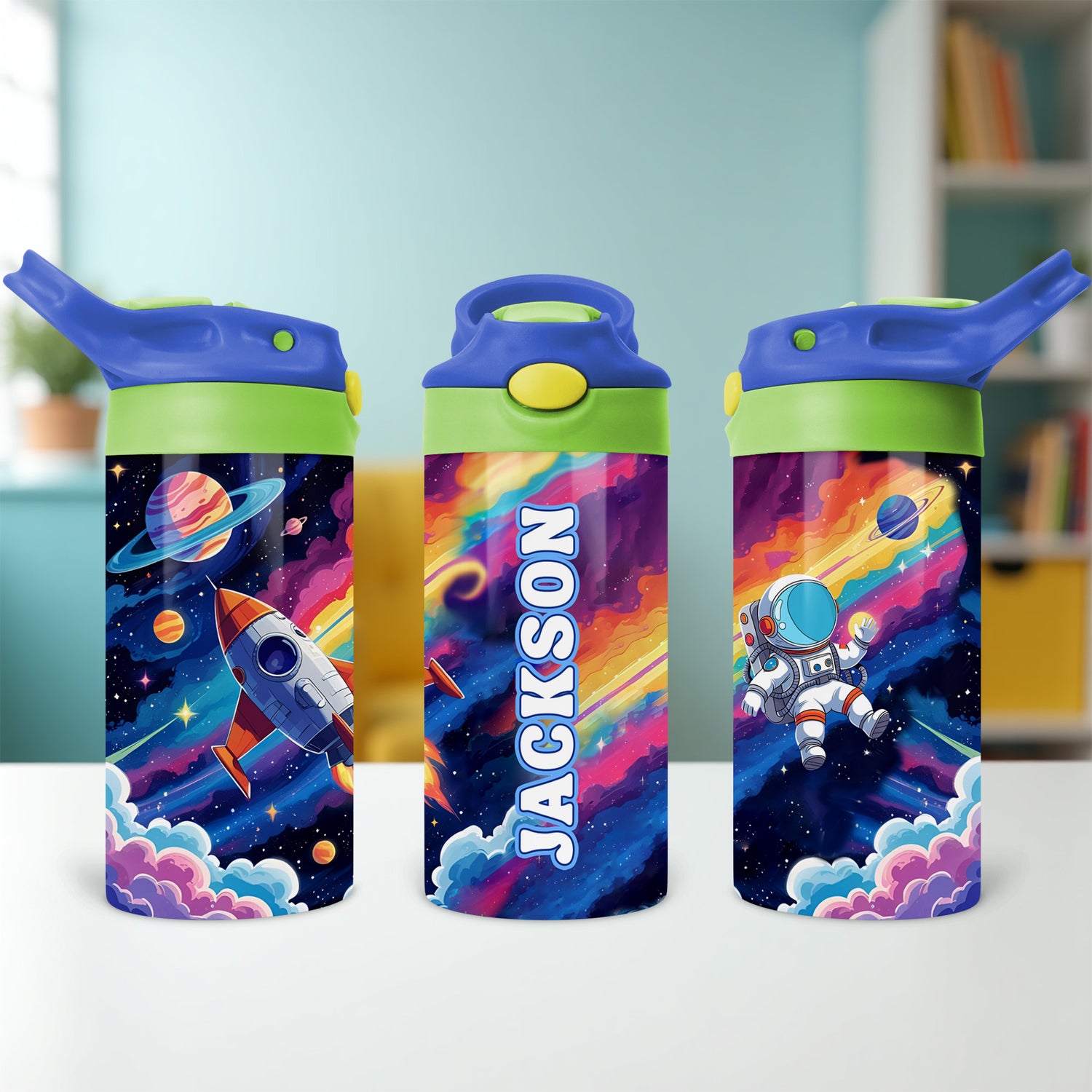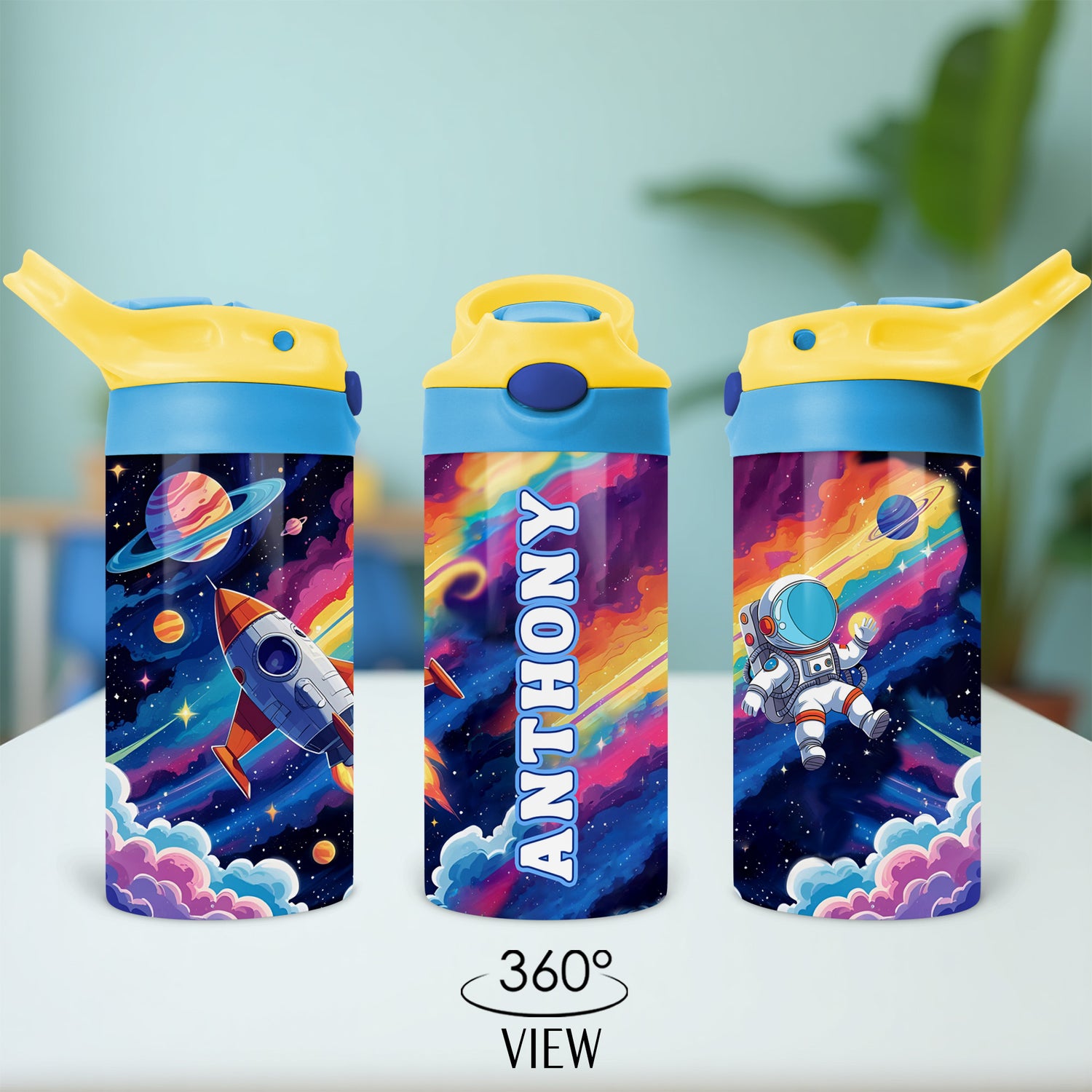 Astronaut Water Bottle for Kids, Custom Tumbler with Name for Back to School