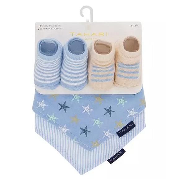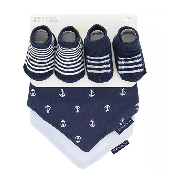 The Tahari Baby Bandana Bib and Sock Set is an adorable set with cute and unique designs of anchors and starfish.