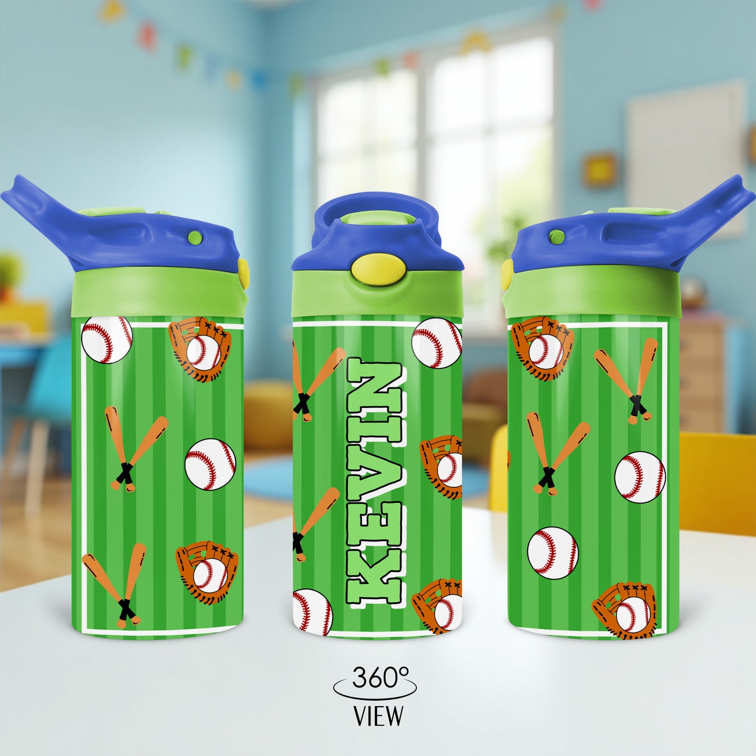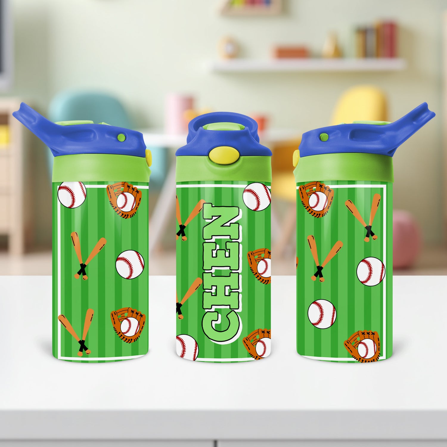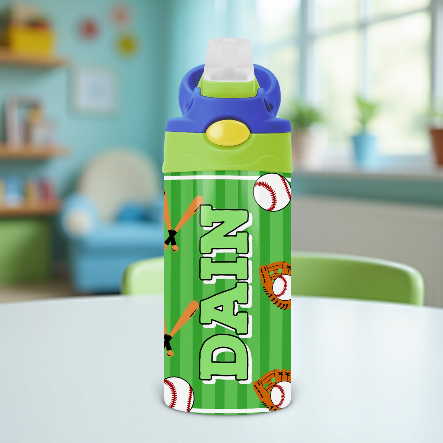 Baseball Water Bottle for Kids, Custom Flip Top Tumbler for Baseball Boys
