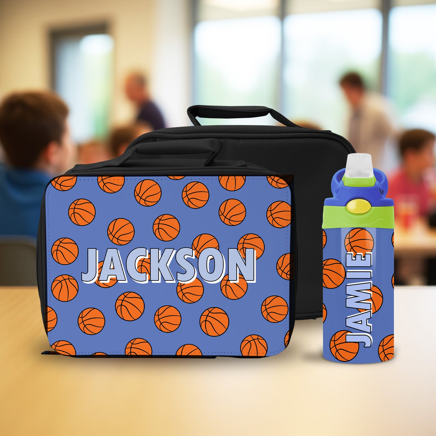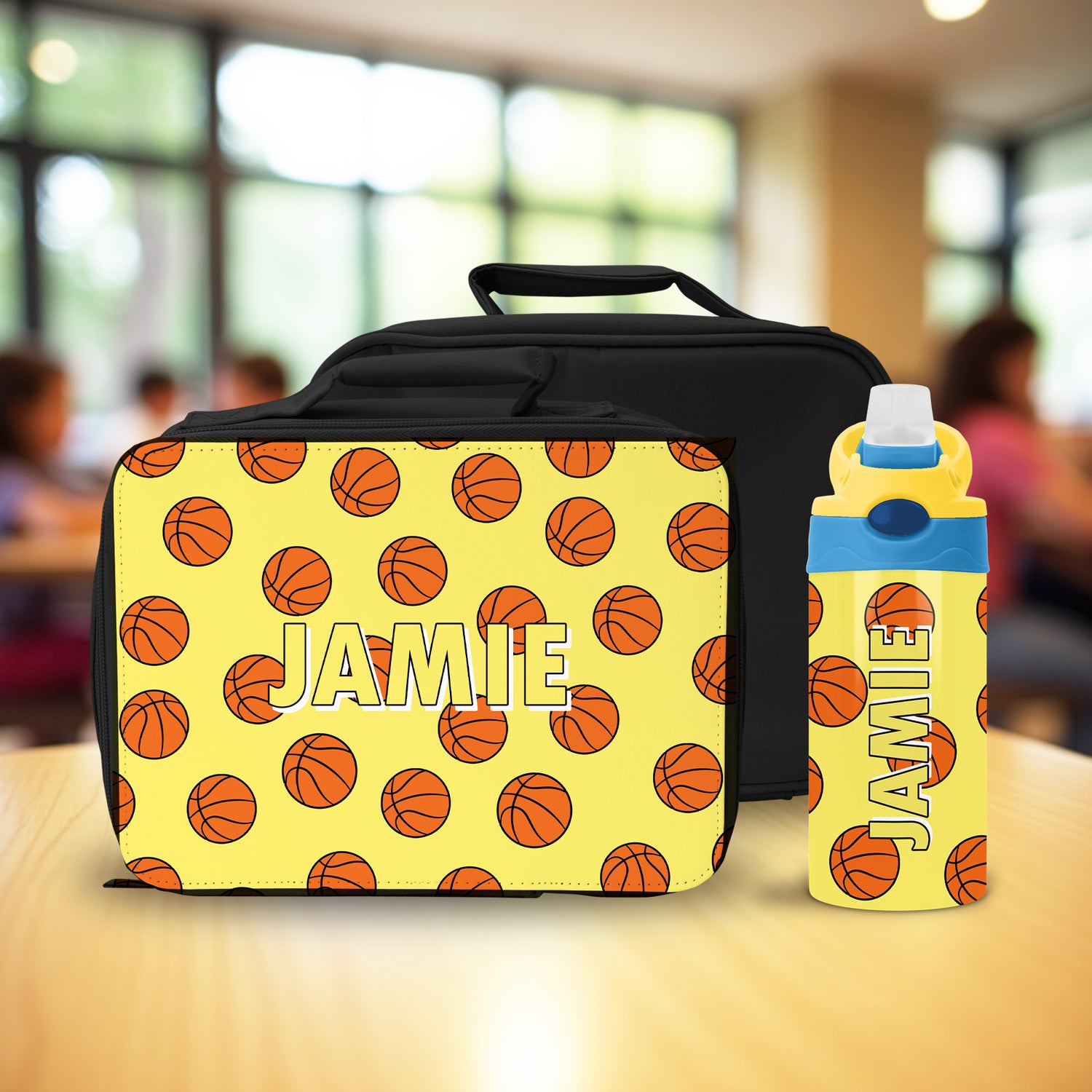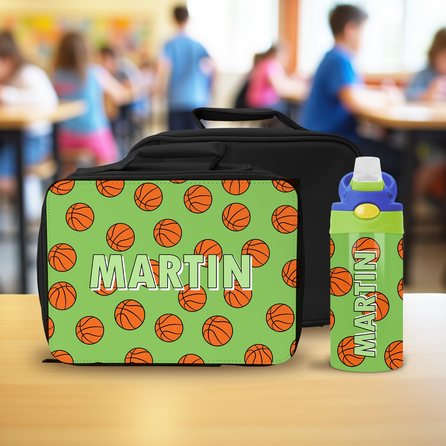 Basketball Lunch Bag and Water Bottle for Kids, Custom Lunch Box and Tumbler