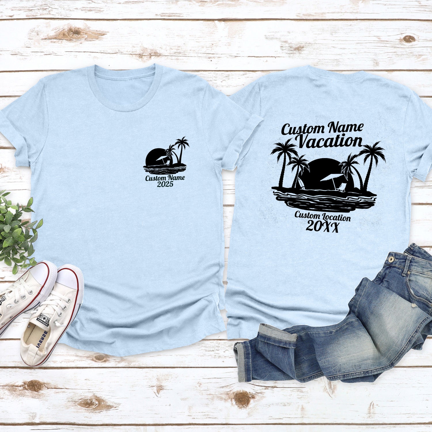 Made from soft, breathable fabric, these beach travel shirts are perfect for family cruise shirts, couples beach shirts with names, or custom tropical vacation shirts.