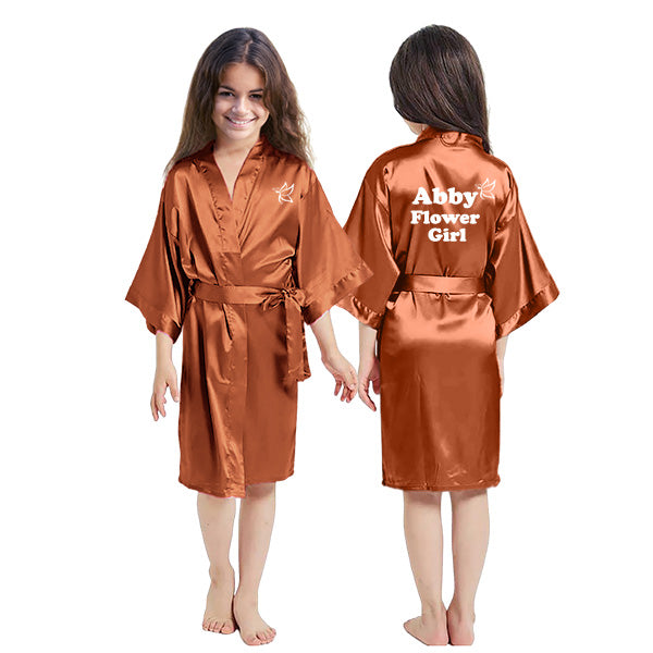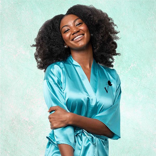 Cute Personalized Robes with name and butterfly design. These custom robes are available in 26 colors in toddler, child, juniors, women's and women's plus sizes. For adults there are S/M, L/XL, XXL, 3XL/4XL and 5XL/6XL. For youths we offer 3T/4T, 6/7, 8/10 and 12/14. All-inclusive sizing, so that everyone gets a great fit. Choose from three unique butterfly designs and add name or other custom text for a robe that is uniquely you. The perfect personalized robe for brides, bridesmaids, flower girls, birthdays and more. 32 print colors are available for your design, along with various font styles. Select a back only design or add on a front design option as well.