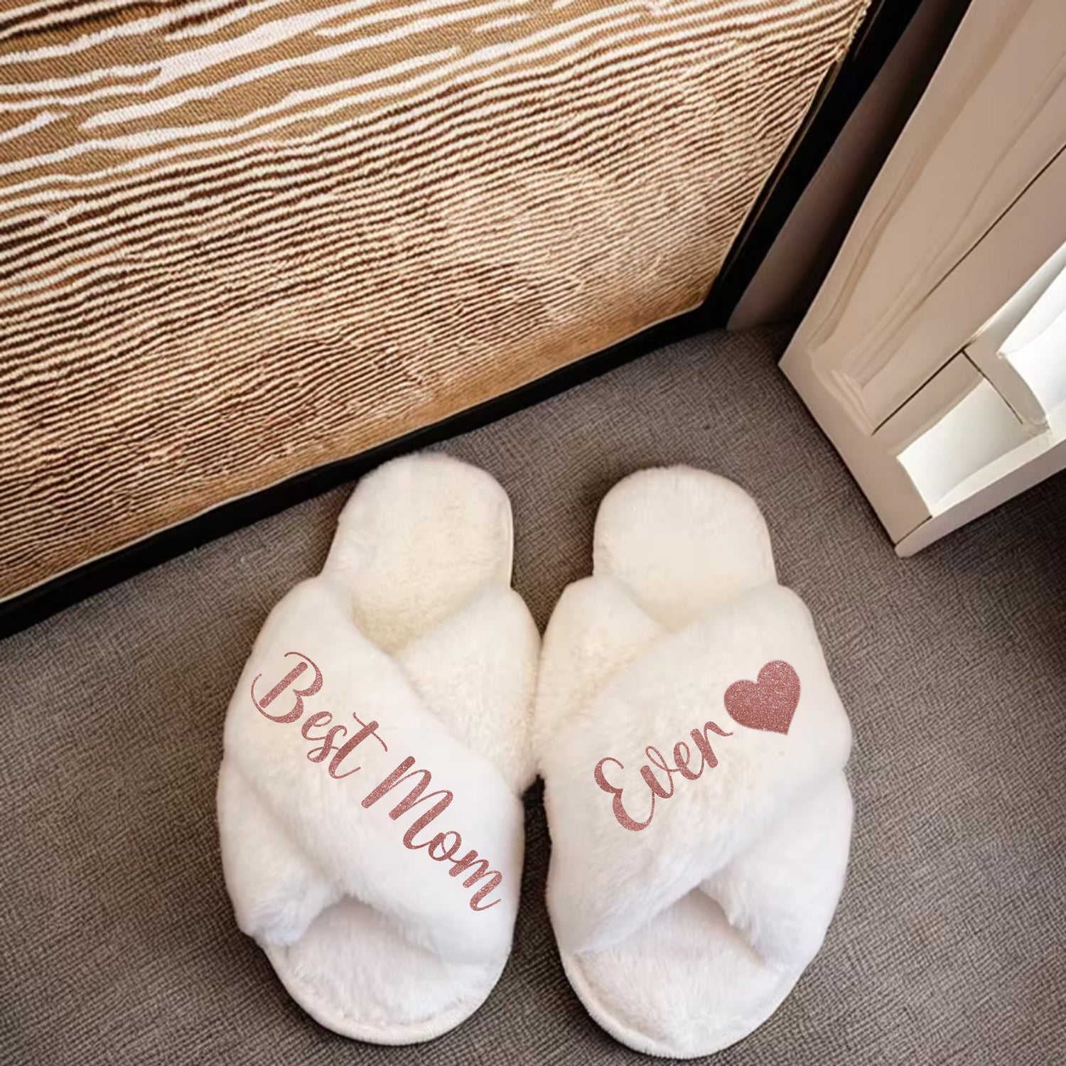 Best Mom Ever Fluffy Slippers, Cozy Criss Cross Slippers for Her, Personalized Mother’s Day Gift