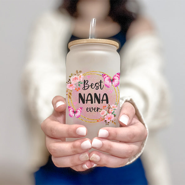 Pink Floral Best Grandma Ever and Best Mom Ever Frosted and Clear Iced Coffee Glass Tumbler