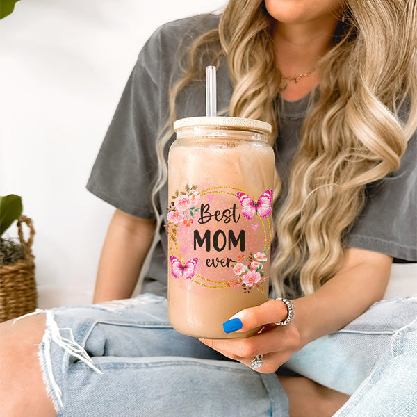 Celebrate the Best Mom Ever with our elegant glass tumbler, the perfect Mother's Day gift or first Mother's Day present. Perfect for Mother's Day, birthdays and Christmas. This thoughtful mom gift is adorned with the endearing phrase Best Mom Ever, serving as a heartfelt tribute to the extraordinary love and dedication of mothers everywhere. Whether it's for your own mom, grandmother, or beloved nana, this tumbler is a cherished keepsake that she'll adore. Crafted with high-quality materials and featuring a timeless design, it's a gift that she'll treasure for years to come. Raise a glass to the best mom ever and show her how much she means to you with this special gift.