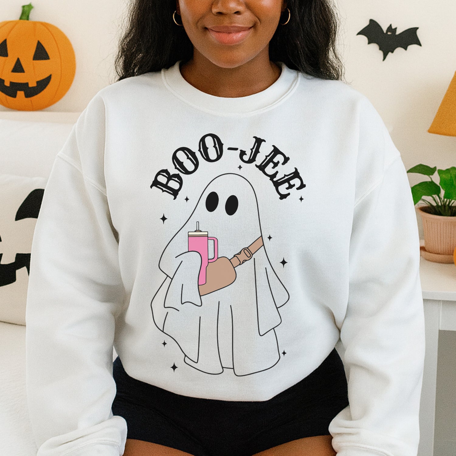 BooJee Ghost w Tumbler Halloween Sweatshirt for Women and Kids