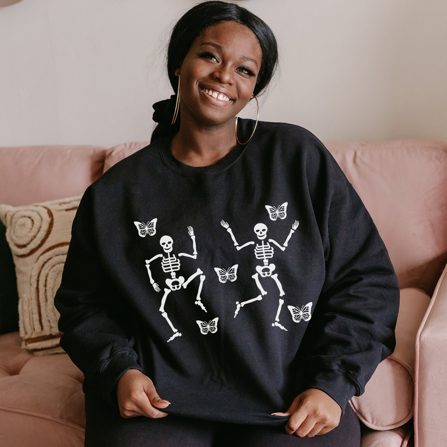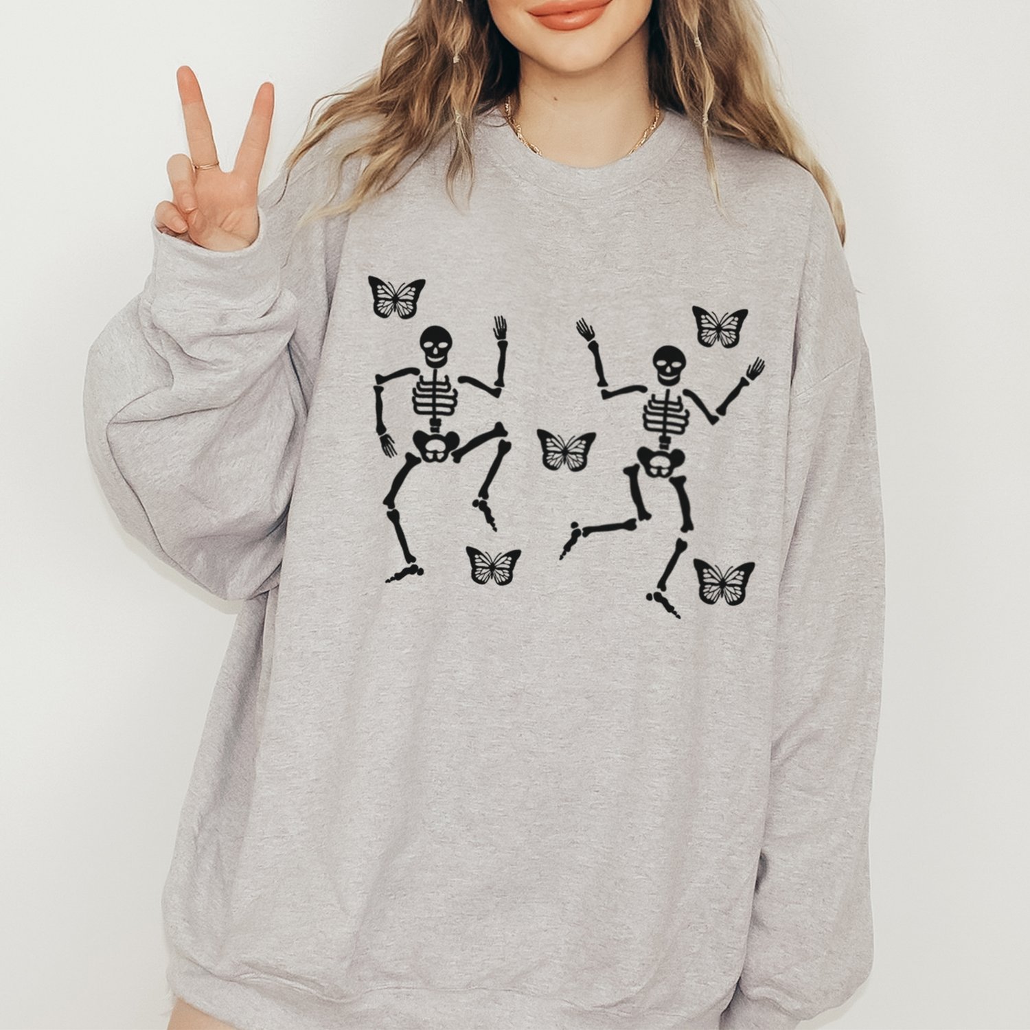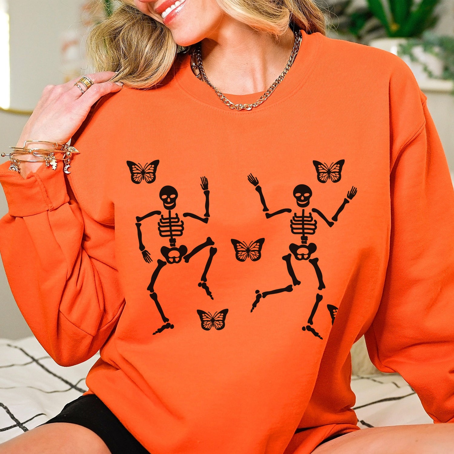 Dancing Skeletons with Butterflies Halloween Sweatshirts for Women