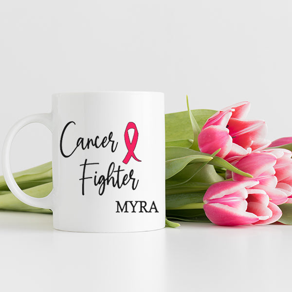 11oz Cancer Fighter Breast Cancer Awareness Month Coffee Mug with Personalized Name