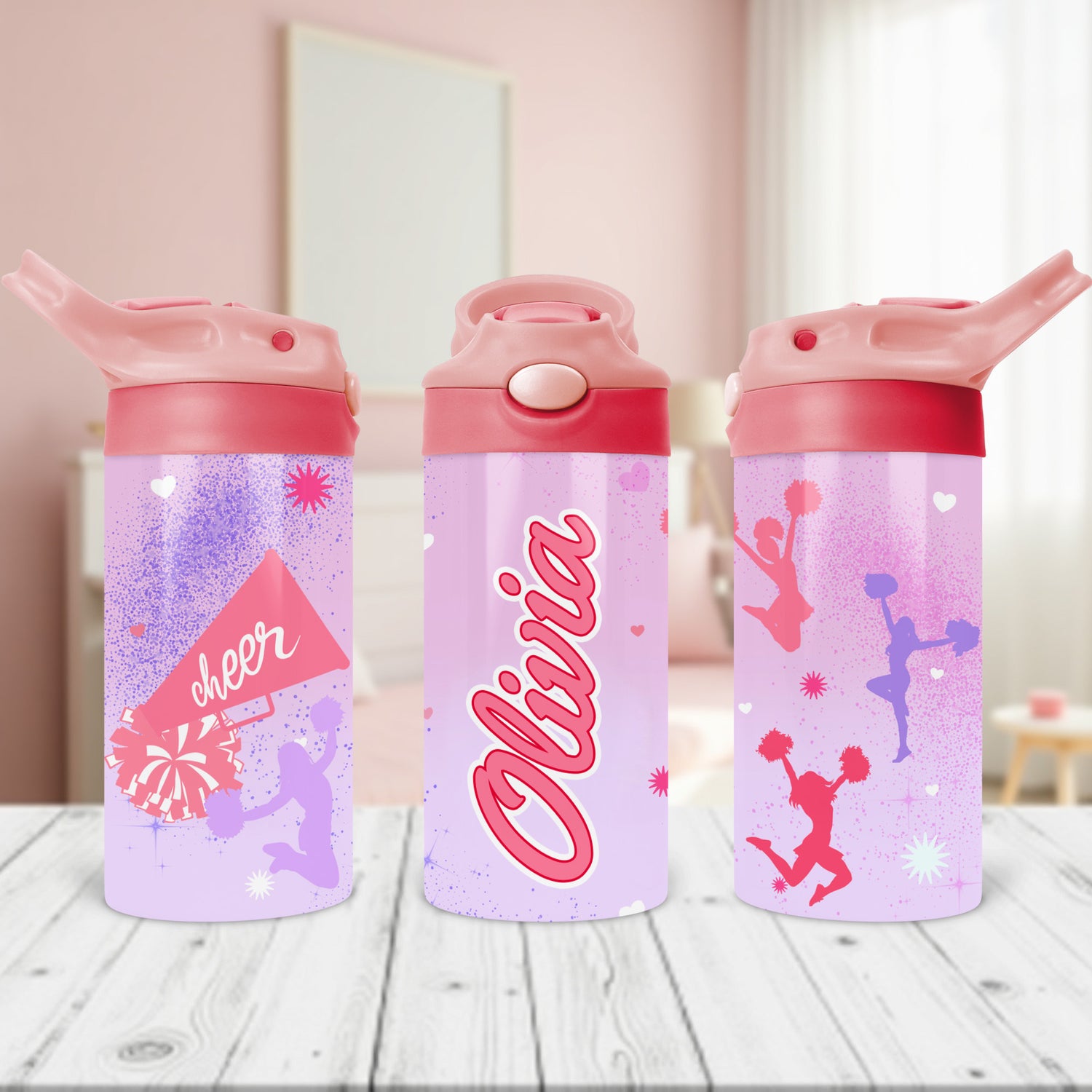 Cheer Water Bottle for Girls, Custom Cup with Flip Top Lid for Back to School Gifts