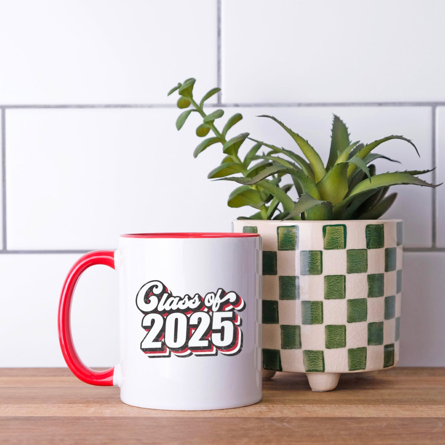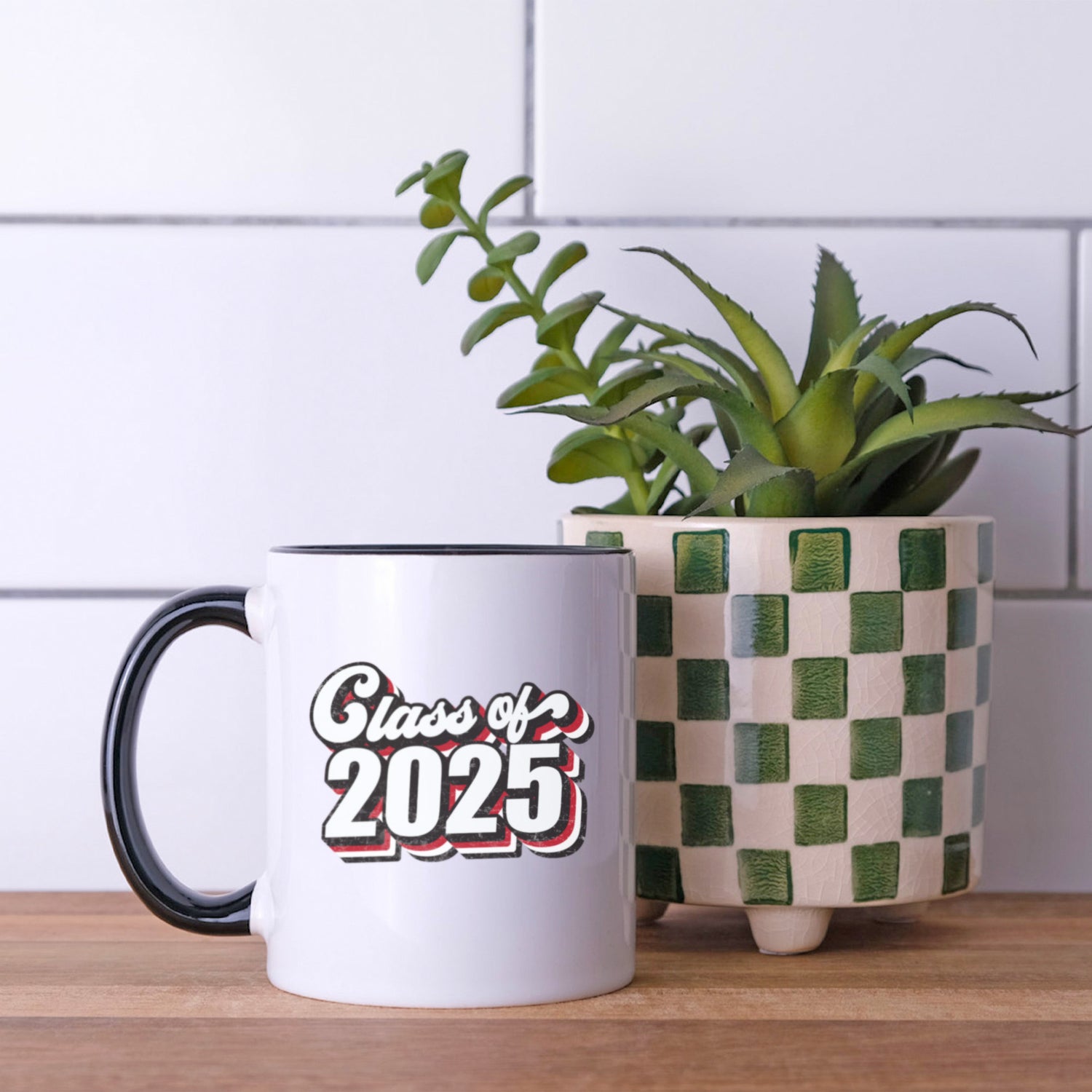 Simple Class of 2025 graduation mug with retro font design, perfect senior gift for high school or college graduate.