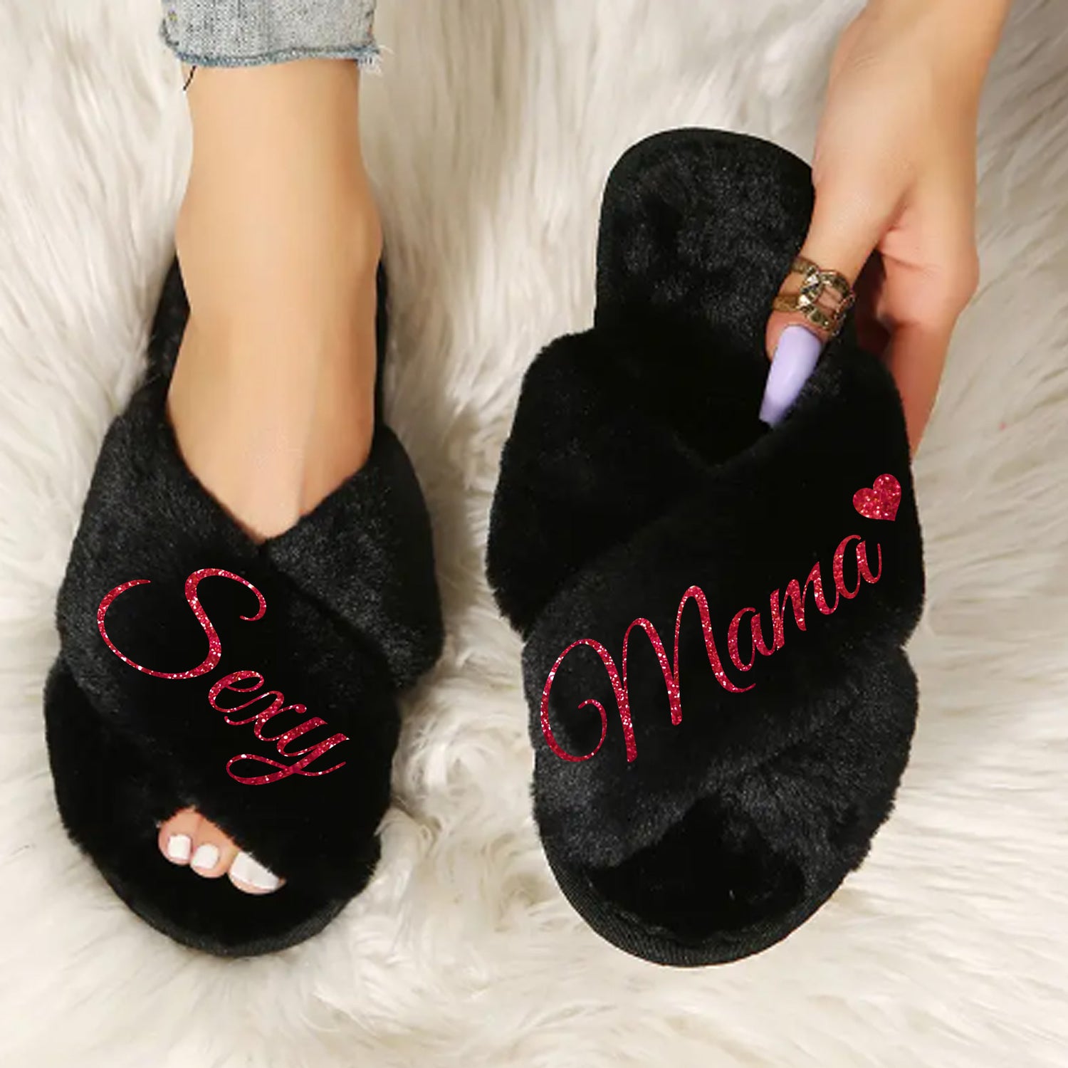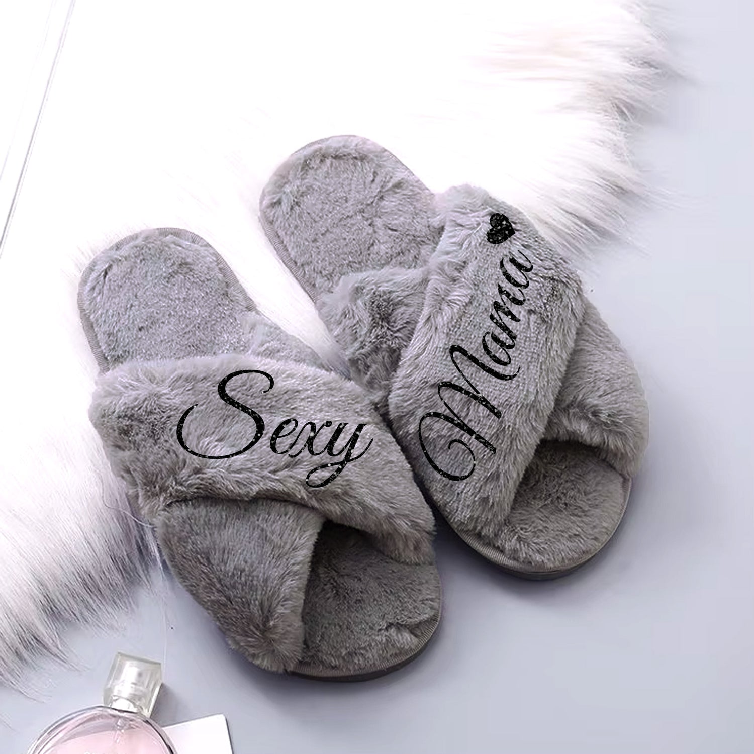 Comfortable Sexy Mama Slippers Fluffy Glitter, Gift from Husband to Wife, Gifts for Her