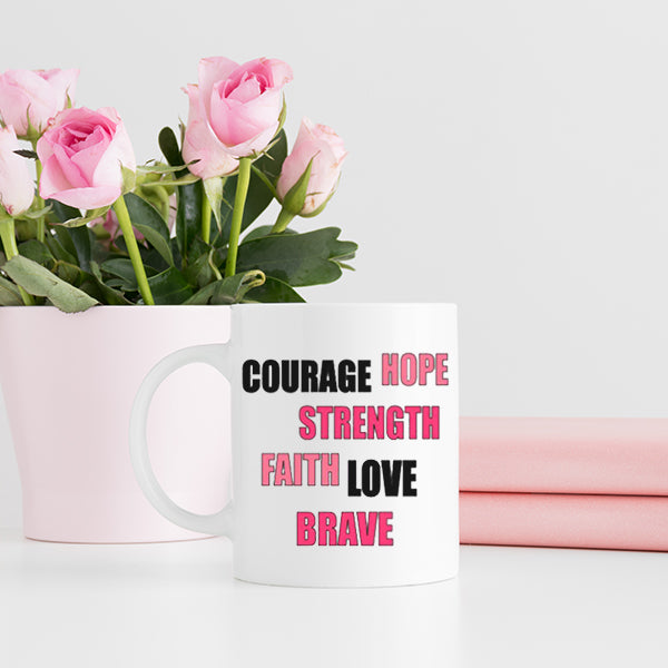 11oz Courage and Love Breast Cancer Awareness Month Coffee Mug
