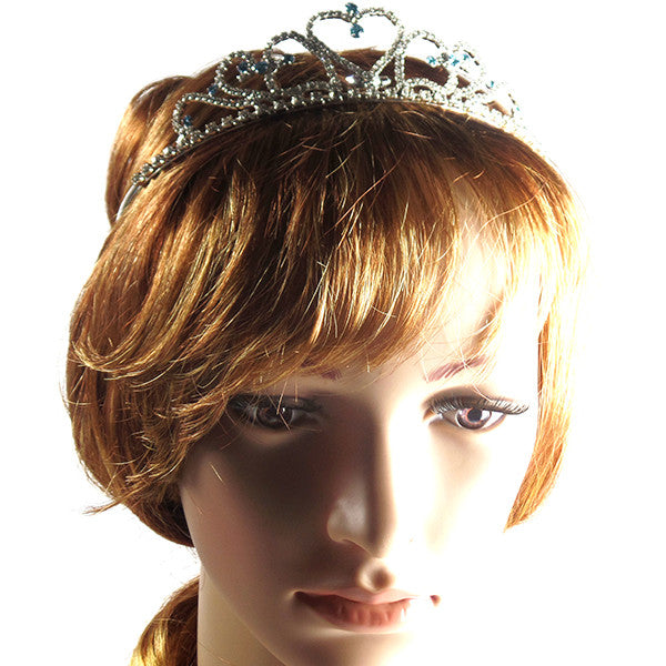Crystal Hearts Tiara with Light Blue Rhinestones for Wedding and Prom